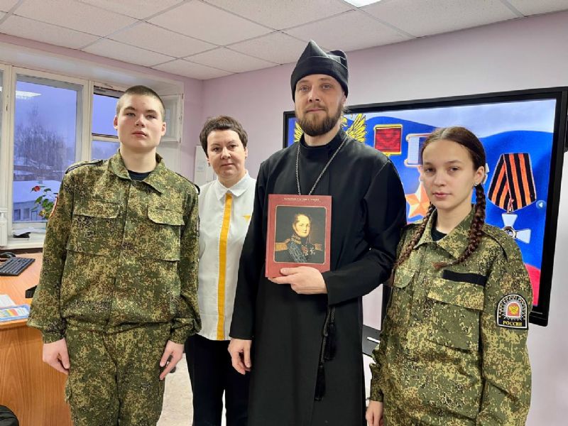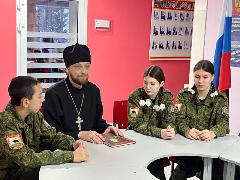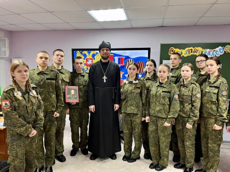 5 декабря клирик храма Воскресения Христова с. Тогур иерей Георгий Полевщиков в преддверии Дня Героев России, который в нашей стране отмечается 9 декабря, провел духовно-нравственные уроки для старшеклассников Колпашевского кадетского корпуса на тему «Герои России и святость».