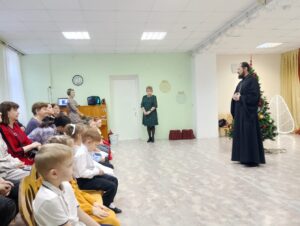 19 декабря, в день памяти святителя Николая, чудотворца, в детском саду «Росинка» г. Стрежевого состоялась встреча воспитанников православной группы с ключарем Свято-Никольского храма иереем Александром Хохловым.