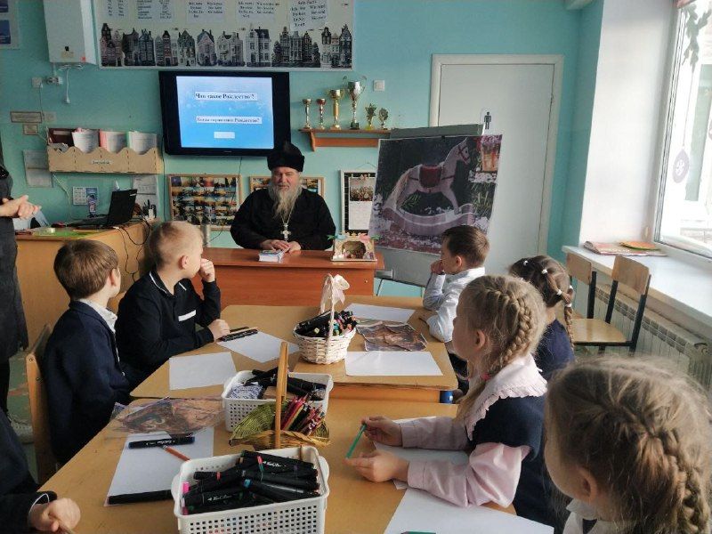 В заключение отец Никита пригласил ребят 7 января на Рождественский праздник в храм. Приглашение отца Никиты стало приятным завершением познавательного занятия. Ребята с радостью приняли приглашение. А на прощание батюшка пожелал всем счастья, добра и благословил на добрые дела.