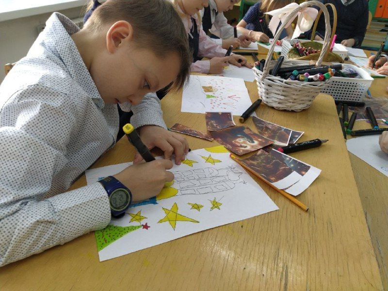 А потом ребятам было предложено нарисовать рисунок Рождества Христова, каким они его видят. Каждый рисунок отражал индивидуальное восприятие Рождества, мечты и надежды ребят.