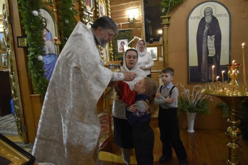 7 января праздничное богослужение в храме прп. Серафима Саровского с. Новый Васюган возглавил настоятель прихода иерей Сергий Мезенцев. В тот же день при храме для детей состоялся торжественный Рождественский утренник.