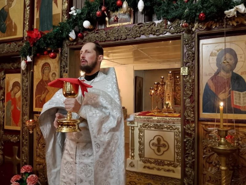 Раннюю Рождественскую Литургию в храме всех Сибирских Святых г. Стрежевого возглавил ключарь Никольского храма иерей Александр Хохлов.