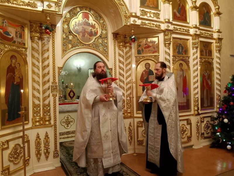 7 января в г. Стрежевом были совершены ранняя и поздняя праздничные Божественные литургии, около 200 человек сподобились причаститься Святых Христовых Таин. Ночное богослужение в Никольском кафедральном соборе возглавил благочинный Северного округа, секретарь Колпашевской епархии, настоятель храма иерей Иоанн Усачёв. По отпусте священник Иоанн поздравил собравшихся с великим праздником и огласил Рождественские послания Святейшего Патриарха Московского и всея Руси Кирилла и Управляющего Колпашевской епархией епископа Колпашевского и Стрежевского Филарета.