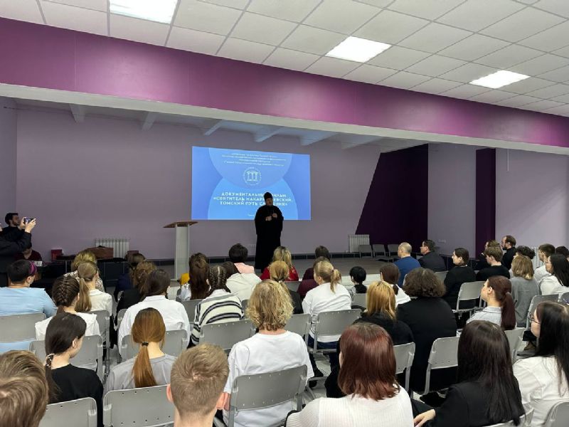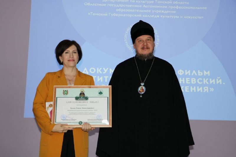 Официальная часть закончилась просмотром фильма «Святитель Макарий (Невский). Томский путь служения», который был представлен автором картины Симкиной Анастасией, студенткой 4 курса Томского губернаторского колледжа культуры и искусств.
