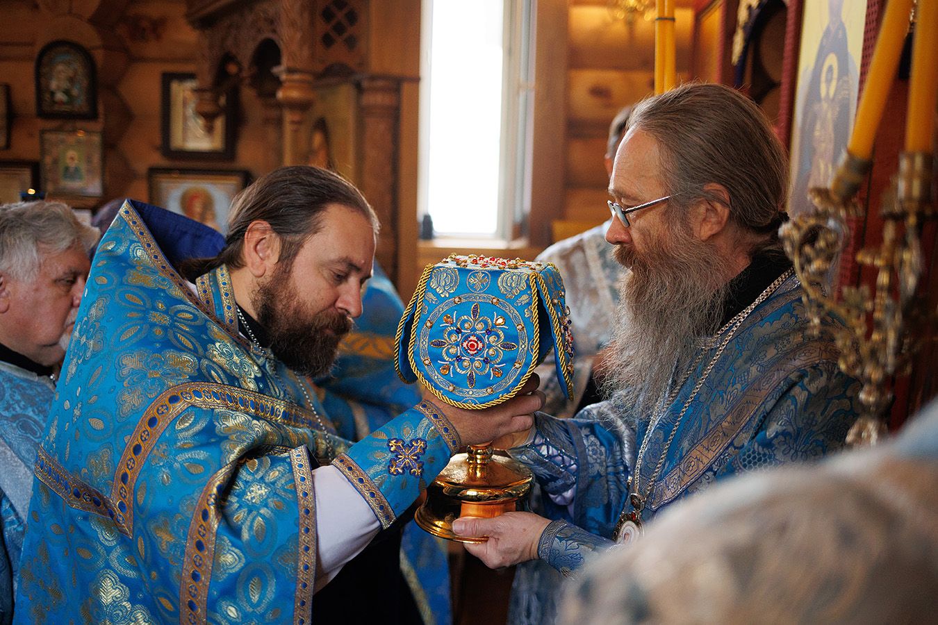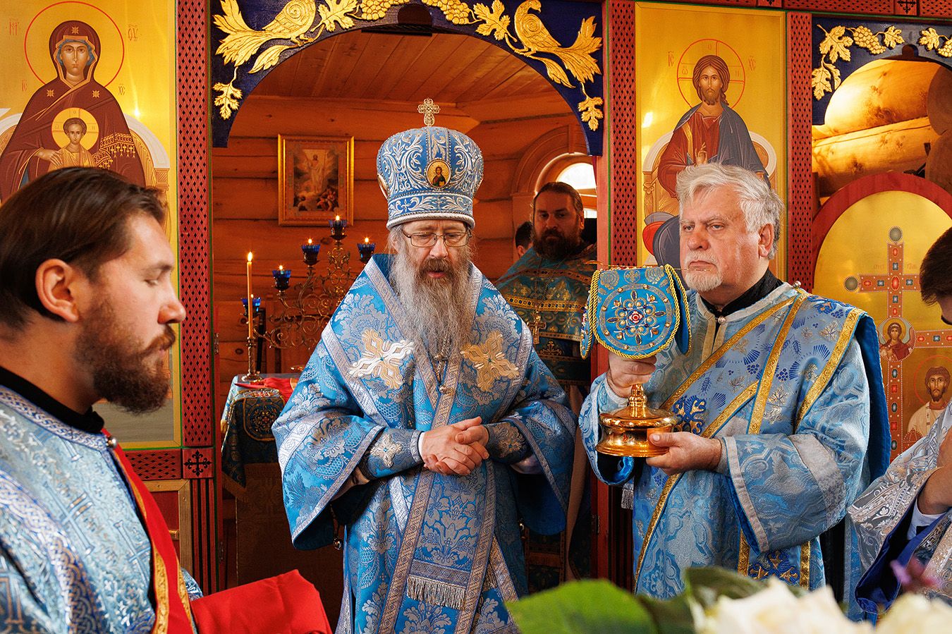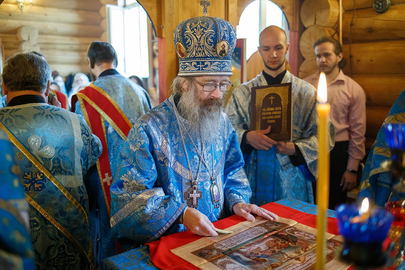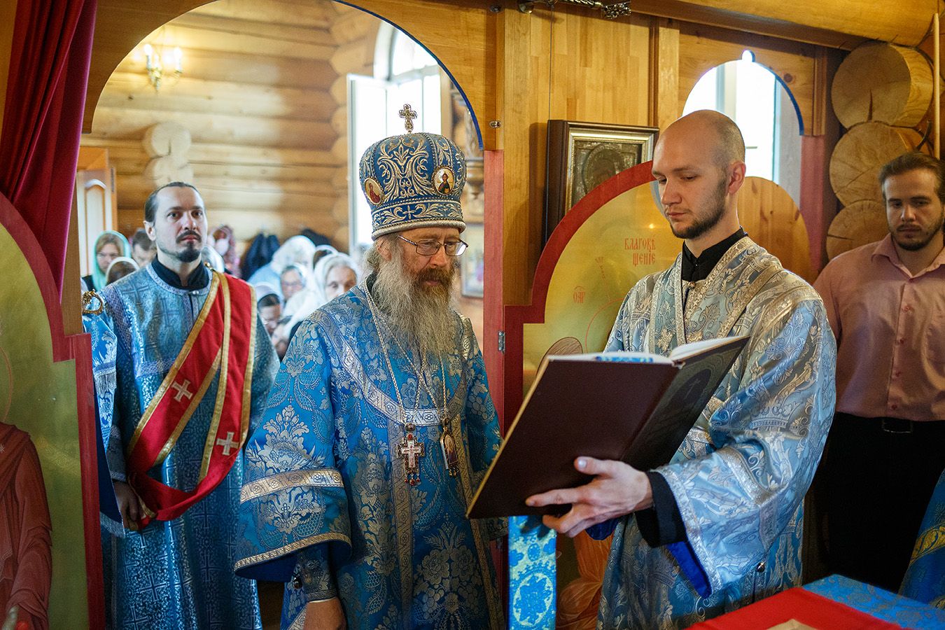 Митрополиту Томскому и Асиновскому Ростиславу сослужили: настоятель храма Рождества Пресвятой Богородицы протоиерей Андрей Носков, настоятель Свято-Владимирского храма, г. Северск протоиерей Дионисий Степанов. Диаконский чин возглавил протодиакон Владимир Марков.