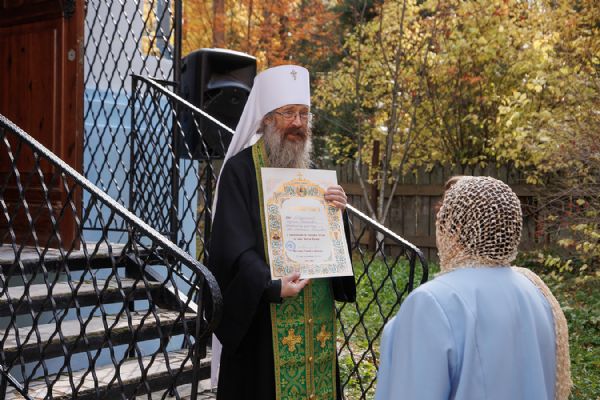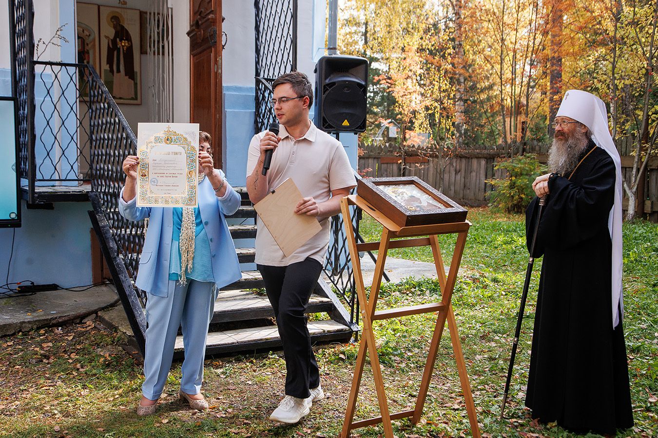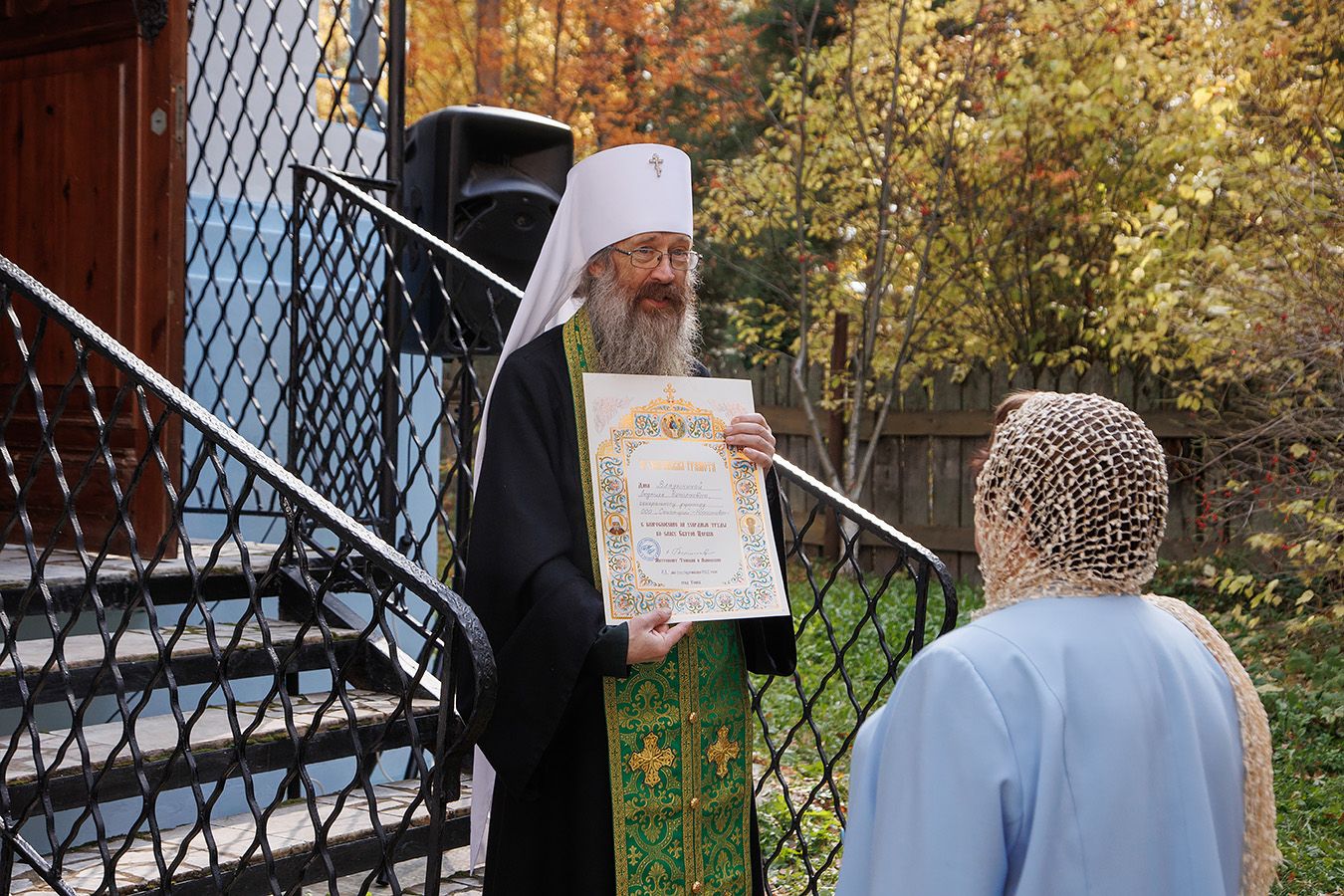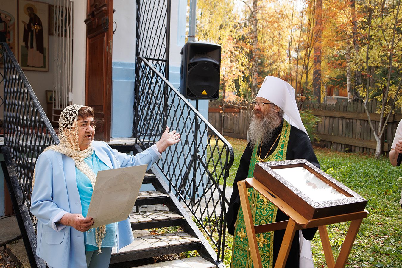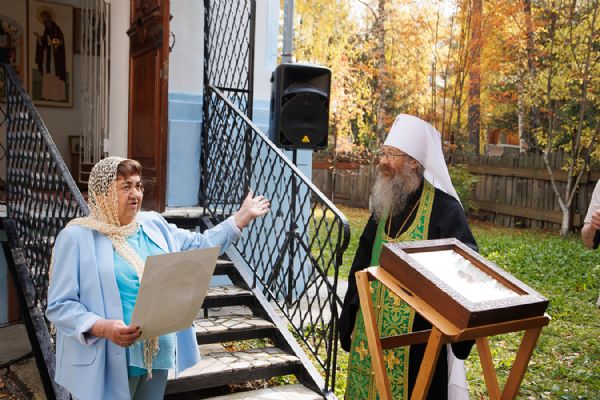 Митрополит Ростислав поздравил собравшихся с круглой датой и совершил перед входом в часовню молебен прп. Сергию Радонежскому. После молебна Глава Томской митрополии вручил директору санатория «Космонавт» Людмиле Николаевне Владыкиной благодарственную архиерейскую грамоту за многолетнее совместное сотрудничество.