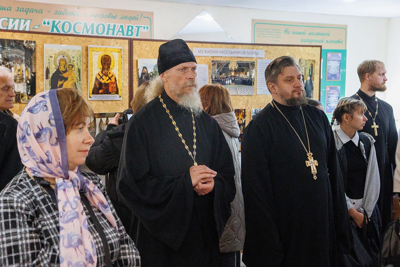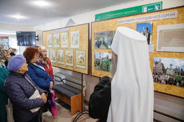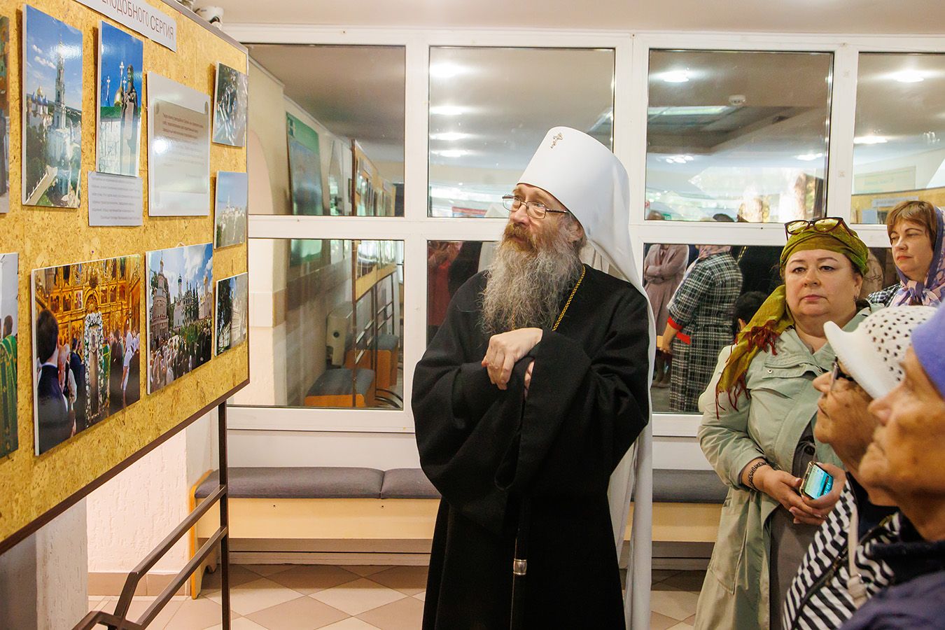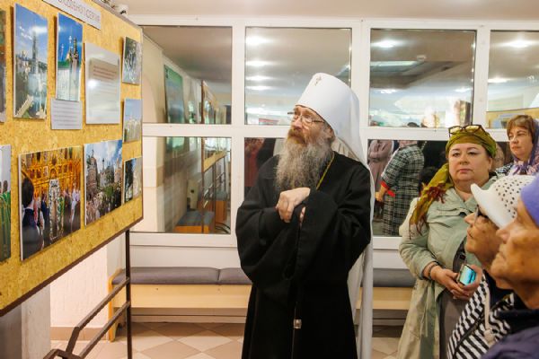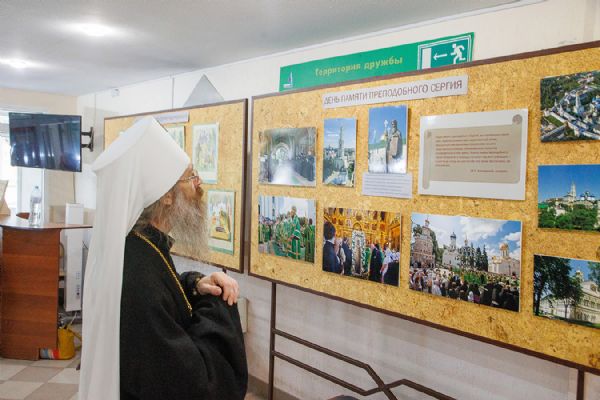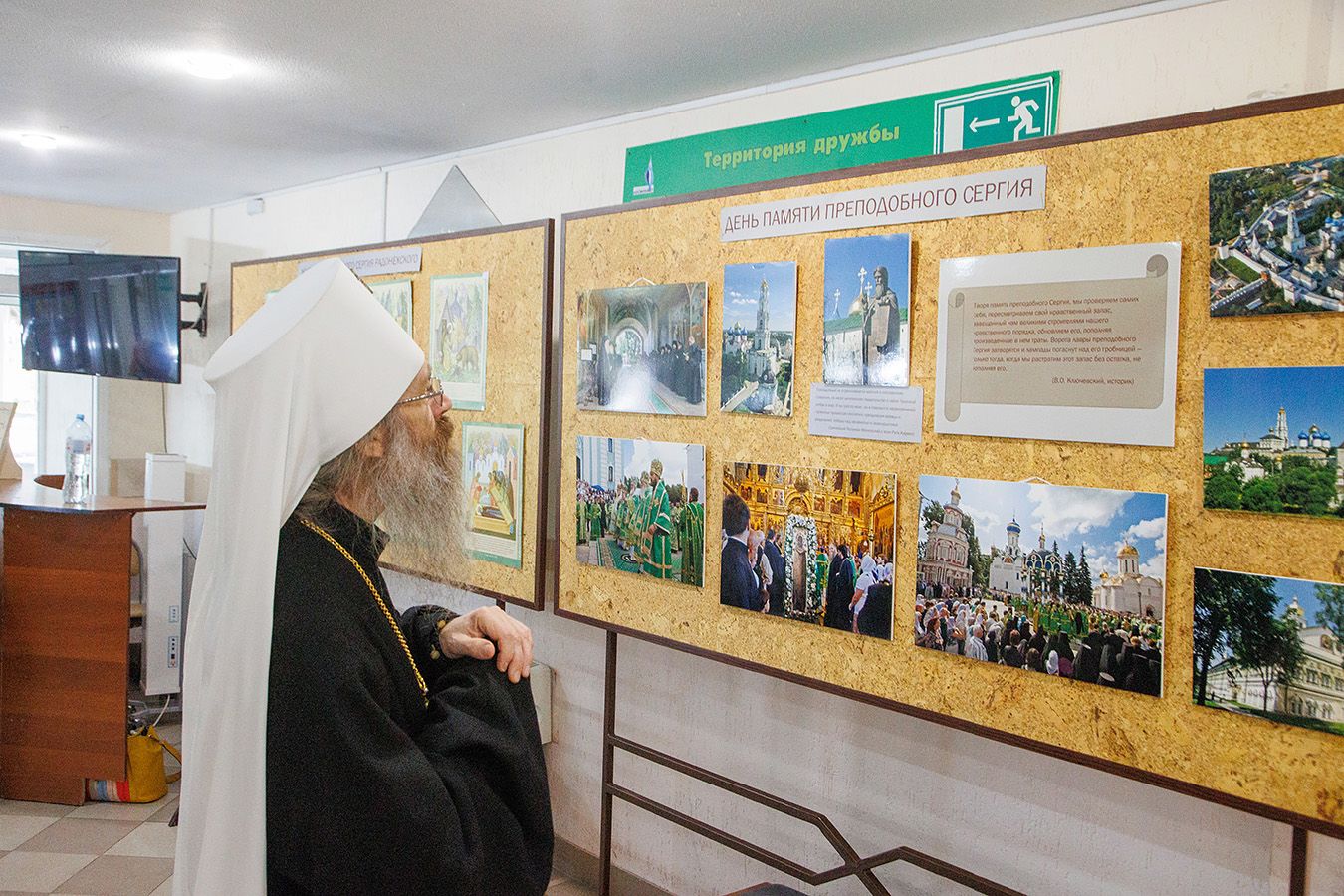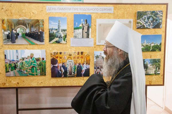 Далее гости были приглашены на организованную Томской епархией выставку, посвященную преподобному Сергию и Троице-Сергиевой Лавре. Экскурсию провел митрополит Ростислав, который когда-то был насельником Обители.