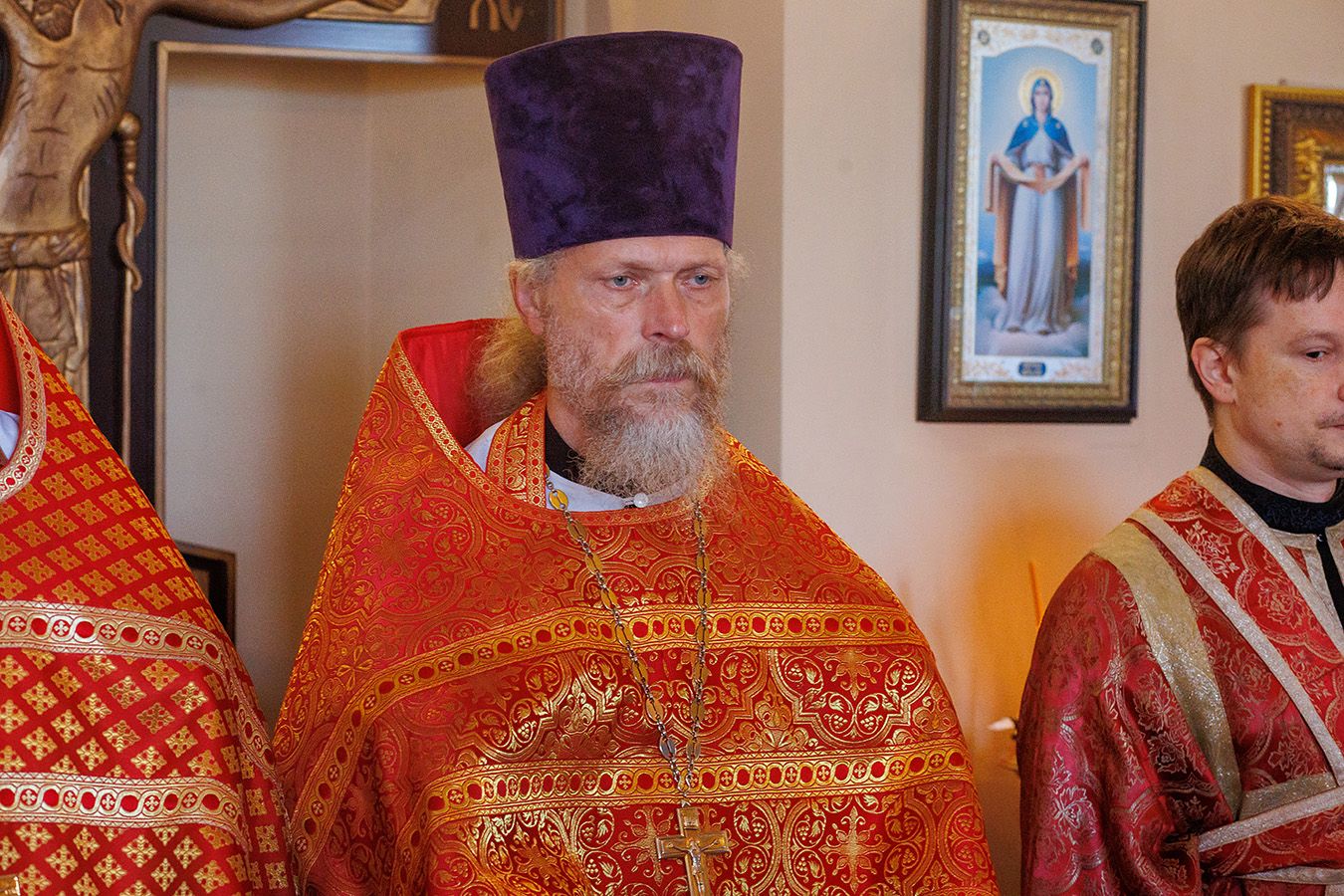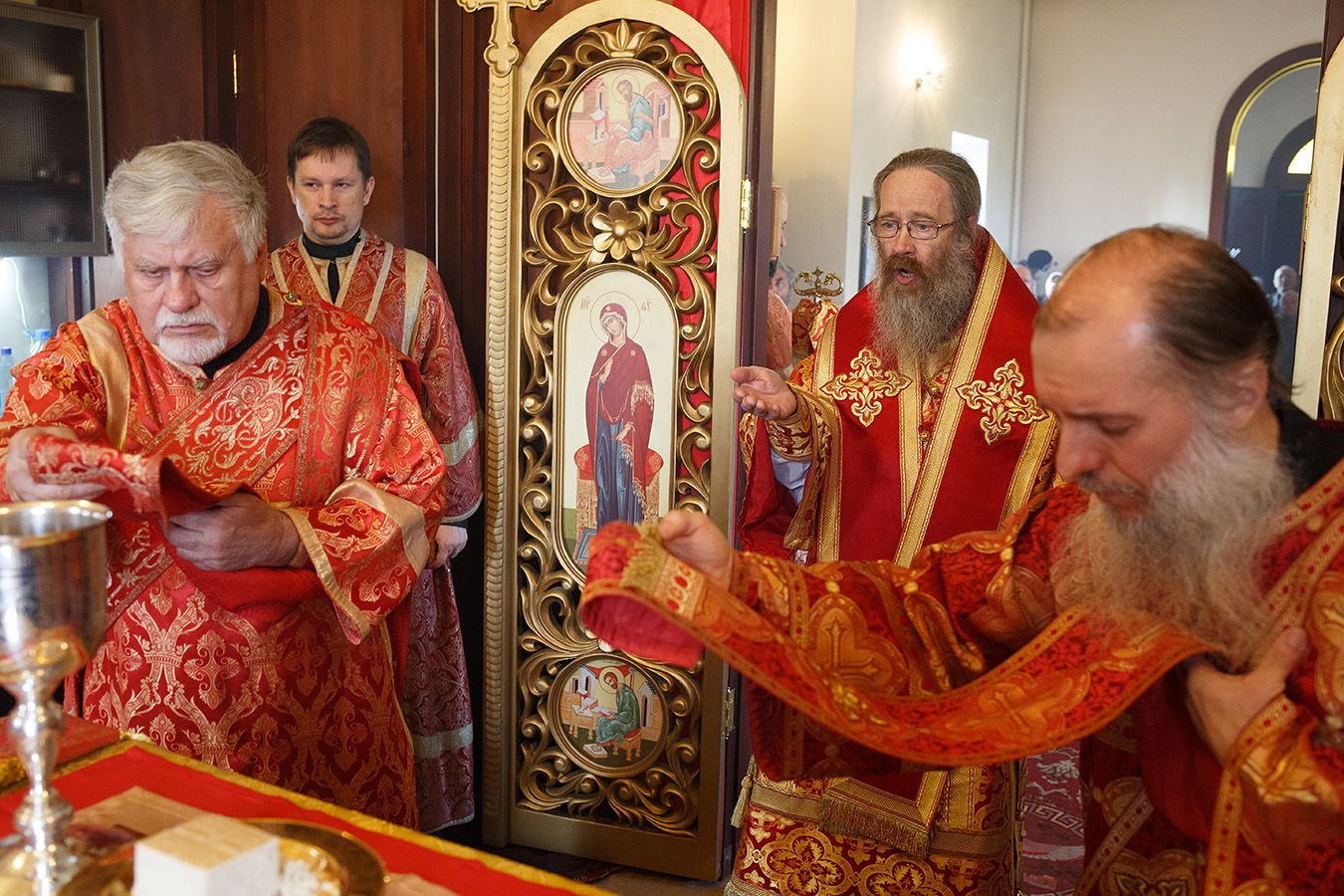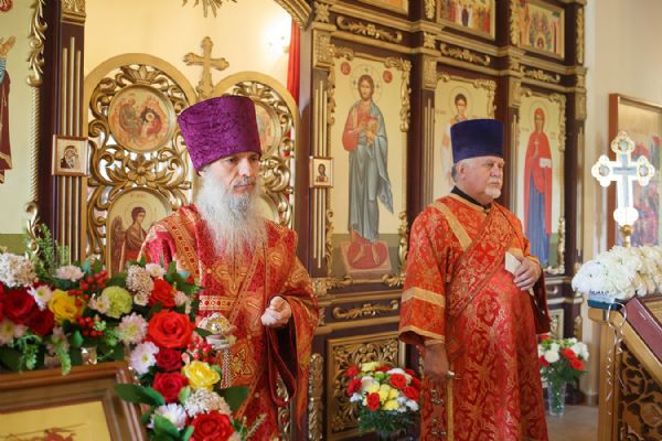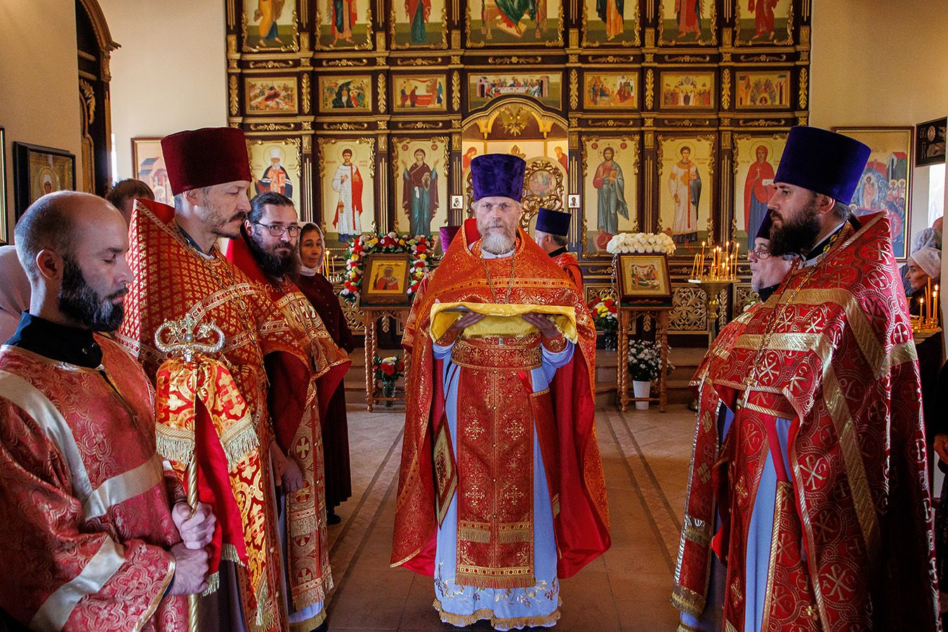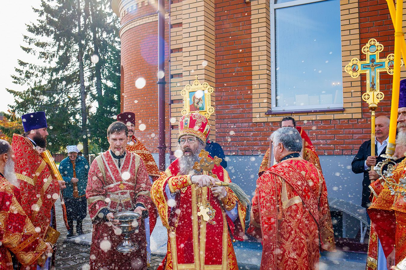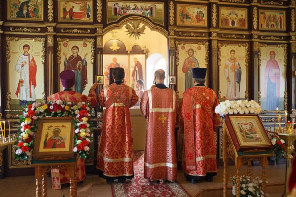 Главе Томской митрополии сослужил настоятель храма в с. Богашево протоиерей Михаил Фаст, настоятель храма св.блгв.кн. Александра Невского протоиерей Сергий Никаноров, настоятель храма апостола Иоанна Богослова в Академгородке иерей Дионисий Землянов, настоятель храма Воздвижения Креста Господня в п. Светлый иерей Владислав Холстинин и настоятель Успенской церкви в д. Лоскутово иерей Иаков Фаст. Диаконский чин представили протодиакон Владимир Марков, протодиакон Роман Штаудингер и диакон Димитрий Чабан. В завершении Литургии был совершен Крестный ход вокруг храма.