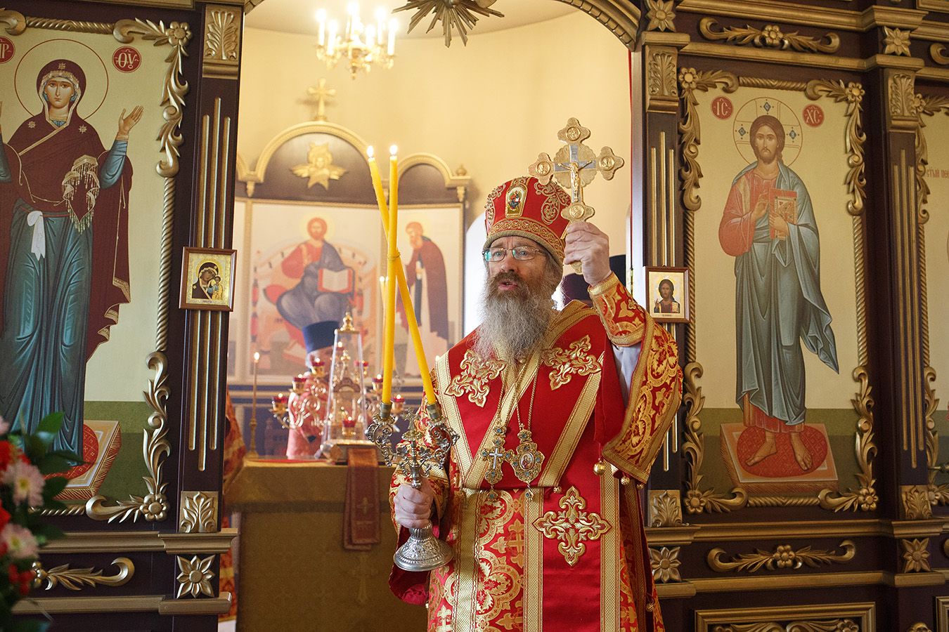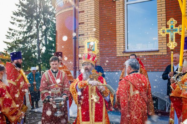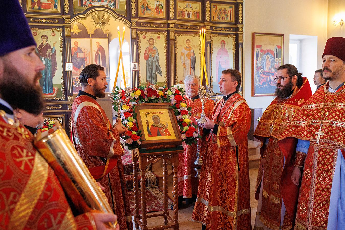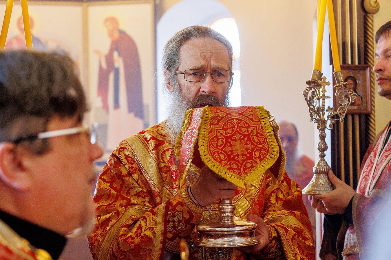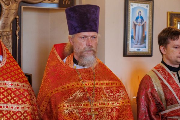 Главе Томской митрополии сослужил настоятель храма в с. Богашево протоиерей Михаил Фаст, настоятель храма св.блгв.кн. Александра Невского протоиерей Сергий Никаноров, настоятель храма апостола Иоанна Богослова в Академгородке иерей Дионисий Землянов, настоятель храма Воздвижения Креста Господня в п. Светлый иерей Владислав Холстинин и настоятель Успенской церкви в д. Лоскутово иерей Иаков Фаст. Диаконский чин представили протодиакон Владимир Марков, протодиакон Роман Штаудингер и диакон Димитрий Чабан. В завершении Литургии был совершен Крестный ход вокруг храма.
