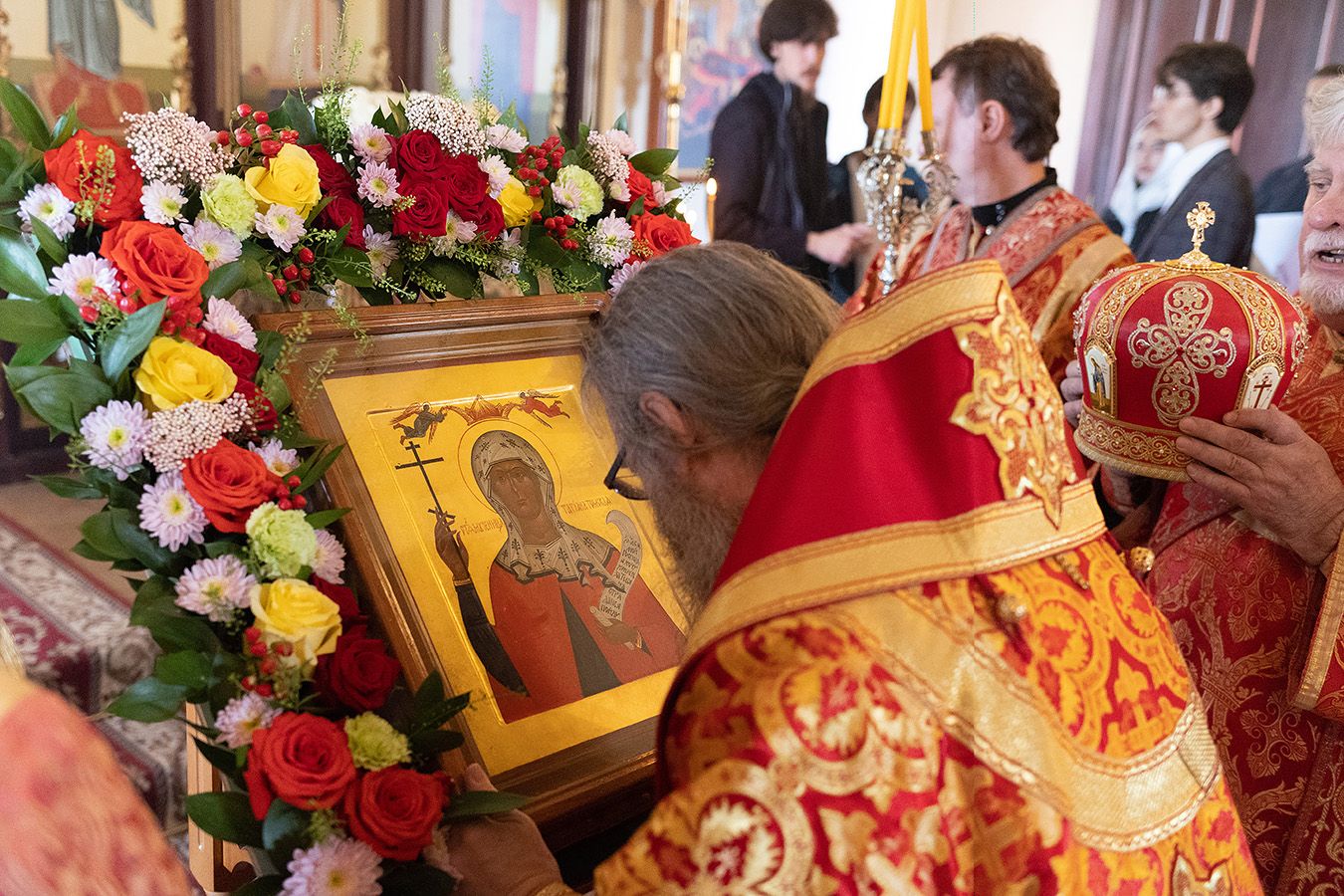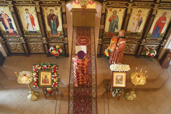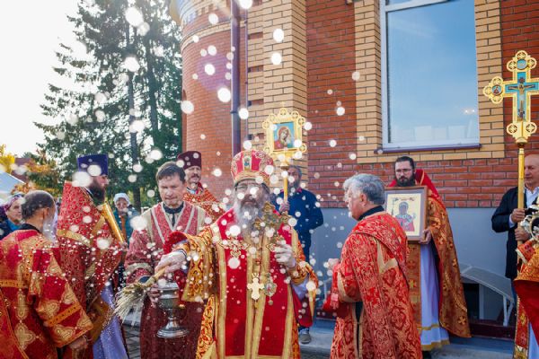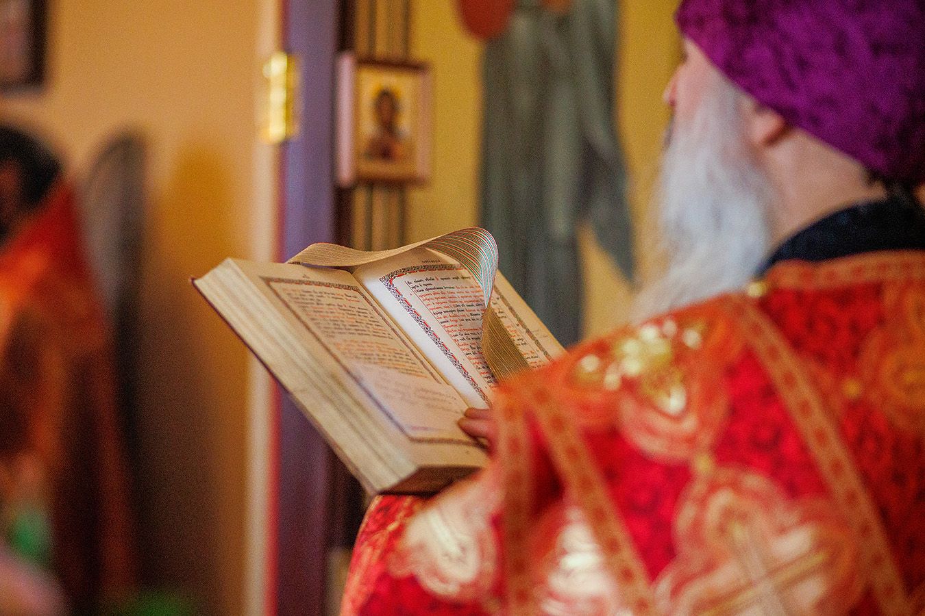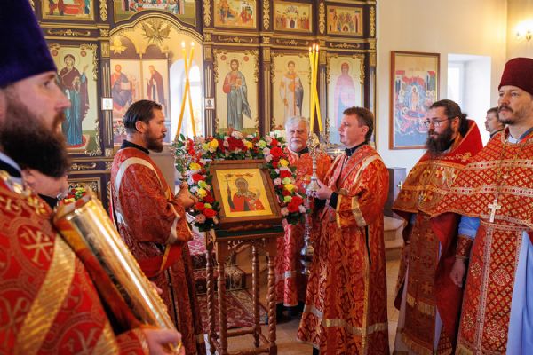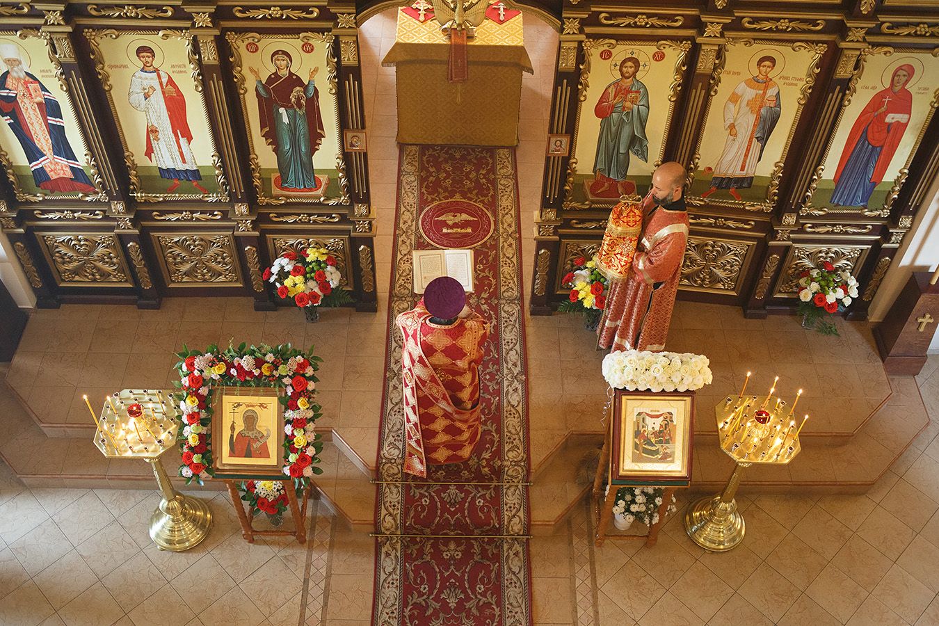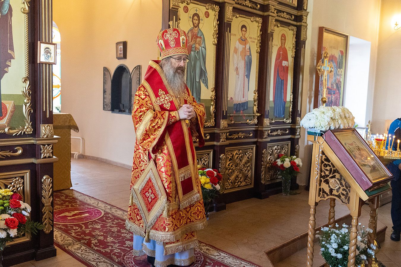 Главе Томской митрополии сослужил настоятель храма в с. Богашево протоиерей Михаил Фаст, настоятель храма св.блгв.кн. Александра Невского протоиерей Сергий Никаноров, настоятель храма апостола Иоанна Богослова в Академгородке иерей Дионисий Землянов, настоятель храма Воздвижения Креста Господня в п. Светлый иерей Владислав Холстинин и настоятель Успенской церкви в д. Лоскутово иерей Иаков Фаст. Диаконский чин представили протодиакон Владимир Марков, протодиакон Роман Штаудингер и диакон Димитрий Чабан. В завершении Литургии был совершен Крестный ход вокруг храма.