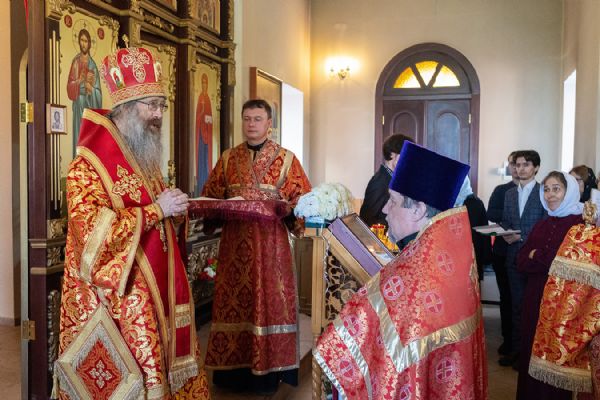 По окончании богослужения митрополит Ростислав обратился к собравшимся с архипастырским словом и поздравил приход с престольным праздником. С 60-летним юбилеем Глава Томской митрополии поздравил иерея Владислава Холстинина и вручил ему медаль святителя Макария (Невского) III степени «За жертвенные труды в Томской епархии Русской Православной Церкви».