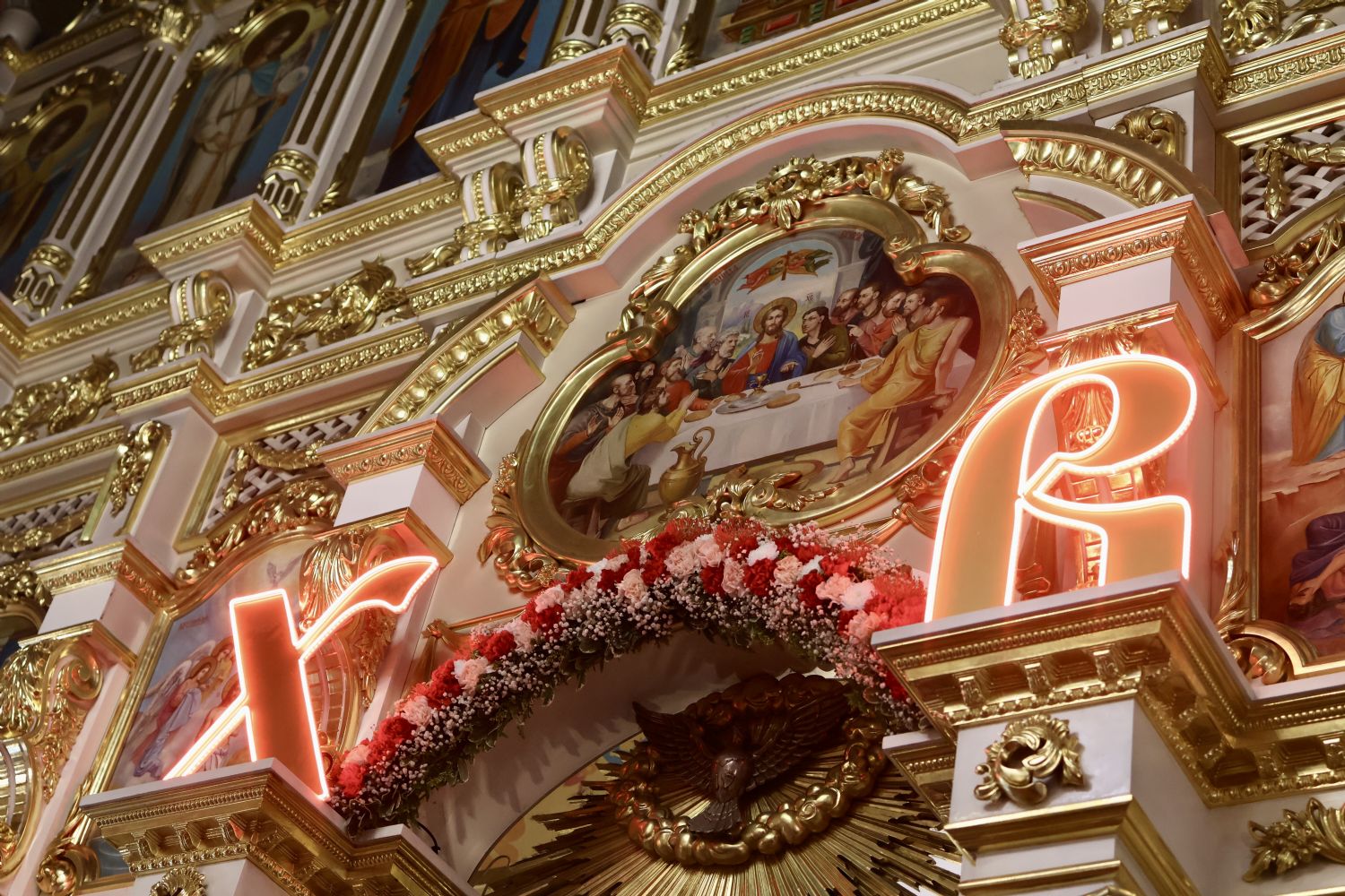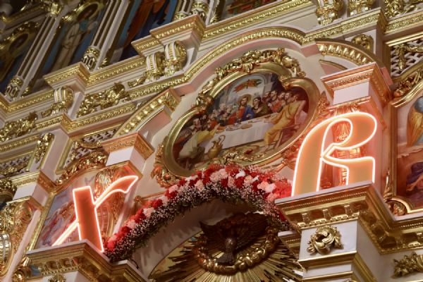 Богослужение в Воскресенском храме прошло по-настоящему торжественно. Красные пасхальные облачения духовенства, дорогие сердцу каждого православного верующего буквы «ХВ» над алтарем, звучавшие с какой-то особенной силой пасхальные возгласы и песнопения — все в этот вечер возвещало о большом празднике.