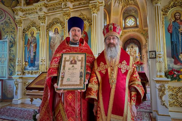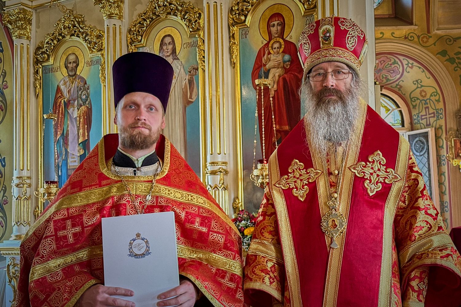 По окончании проповеди митрополит Ростислав обратился к сослужащим священникам с поздравительным адресом. В праздничные дни юбилеи священнической и диаконской хиротоии отмечают: Иерей Александр Федотов, штатный священник Богородице-Владимирского храма г. Северска, отмечает 25-летие священнической хиротонии. Иерей Александр был удостоен патриаршей грамоты за усердное служение и в ознаменование 25- летия служения престолу Божию. Иерей Сергей Шитиков, штатный священник Свято-Троицкой церкви г. Томска, отмечает 10-летие священнической хиротонии. Диакон Дмитрий Кремнев, штатный диакон Воскресенской церкви г. Томска, отмечает 10-летие диаконской хиротонии.