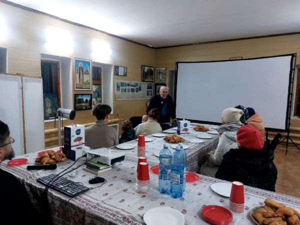 Вечеромна приходе состоялась лекция-беседа "Личность преп. Сергия Радонежского и ее значение для современного мира. Об истории строительства храма преподобного Сергия рассказал инициатор строительства Григорий Иванович Тригорлов.