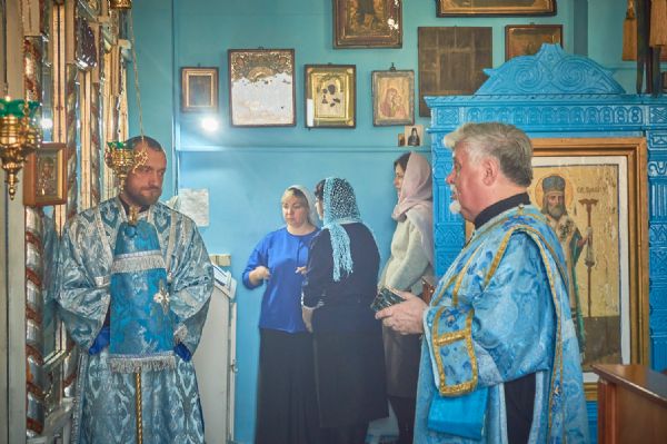 Его Высокопреосвященству сослужили настоятель Покровского храма г. Асино протоиерей Александр Никулин, настоятель Воскресенского храма г. Томска иерей Дионисий Мелентьев, ключарь Богоявленского собора г. Томска иерей Олег Огнёв и штатный священник Покровского храма г. Асино иерей Павел Волковский.