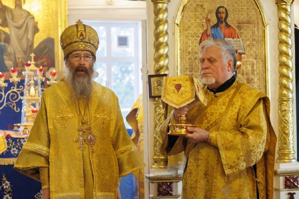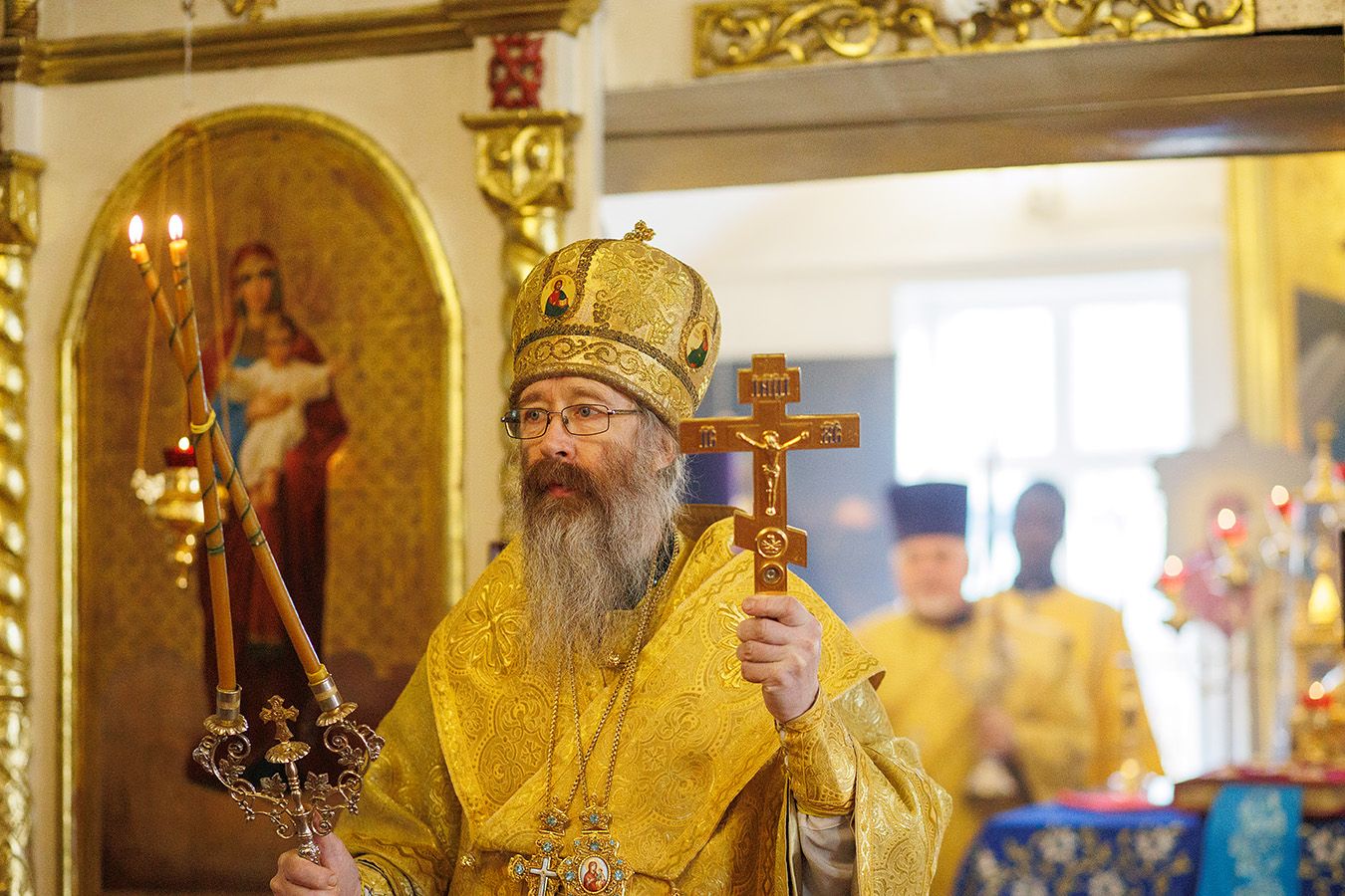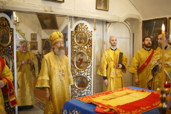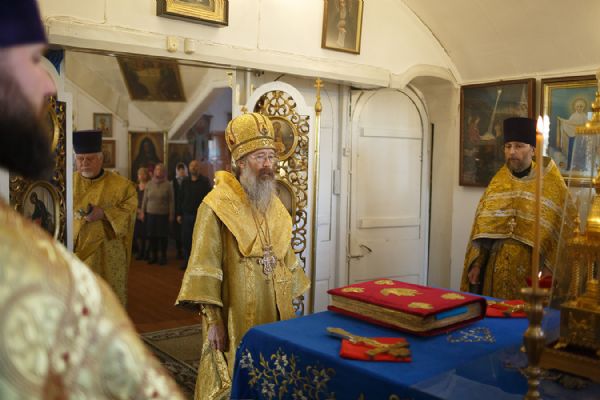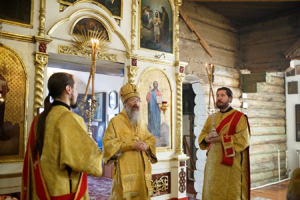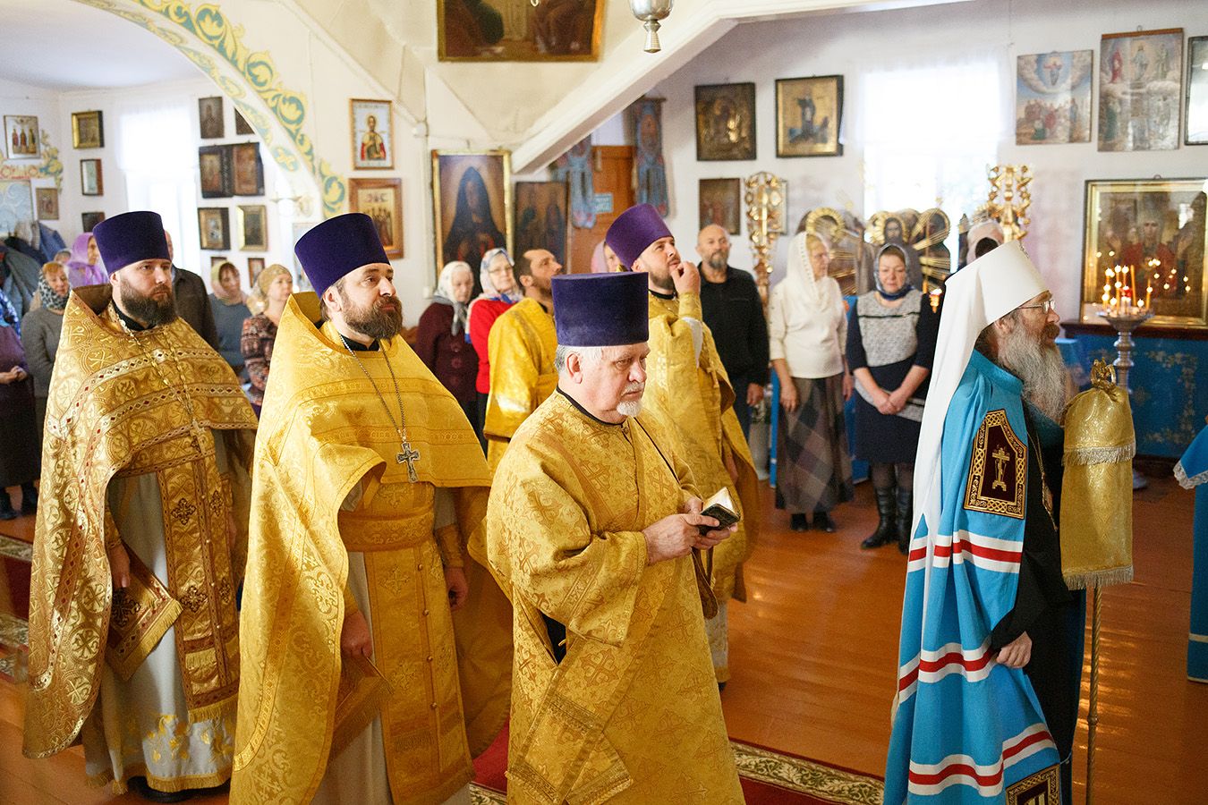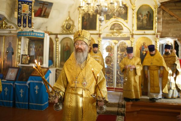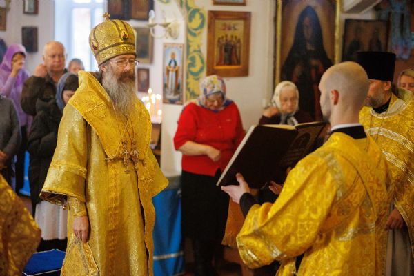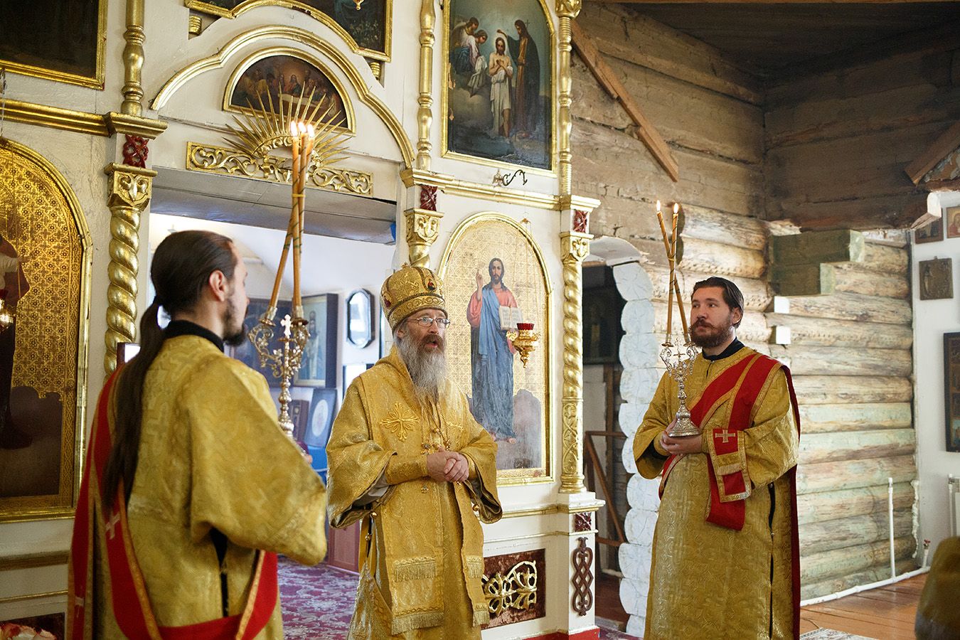 Его Высокопреосвященству сослужили благочинный Томского района, настоятель Владимирского храма г. Северска протоиерей Дионисий Степанов, настоятель храма Покрова Пресвятой Богородицы с. Моряковский Затон иерей Сергий Моисеев, настоятель храма святого благоверного князя Александра Невского г. Томска протоиерей Сергий Никаноров и ключарь Богоявленского собора г. Томска иерей Олег Огнёв.
