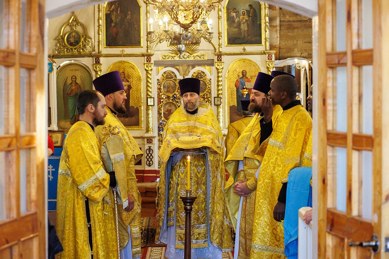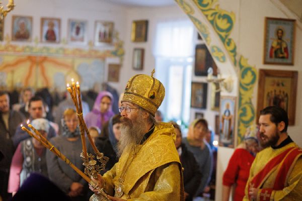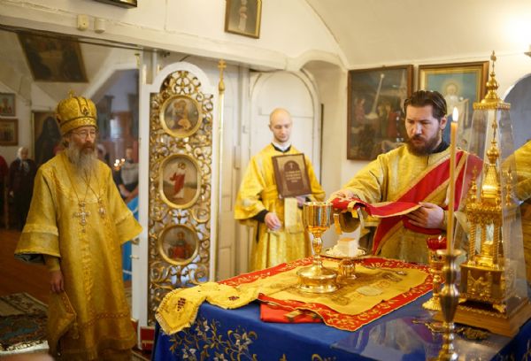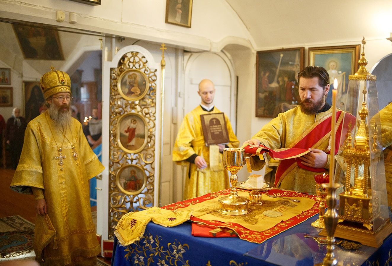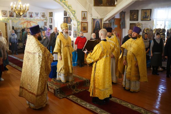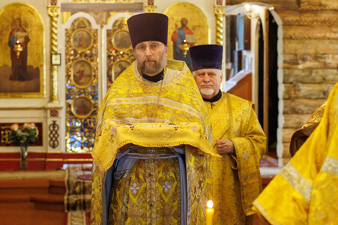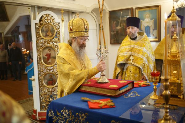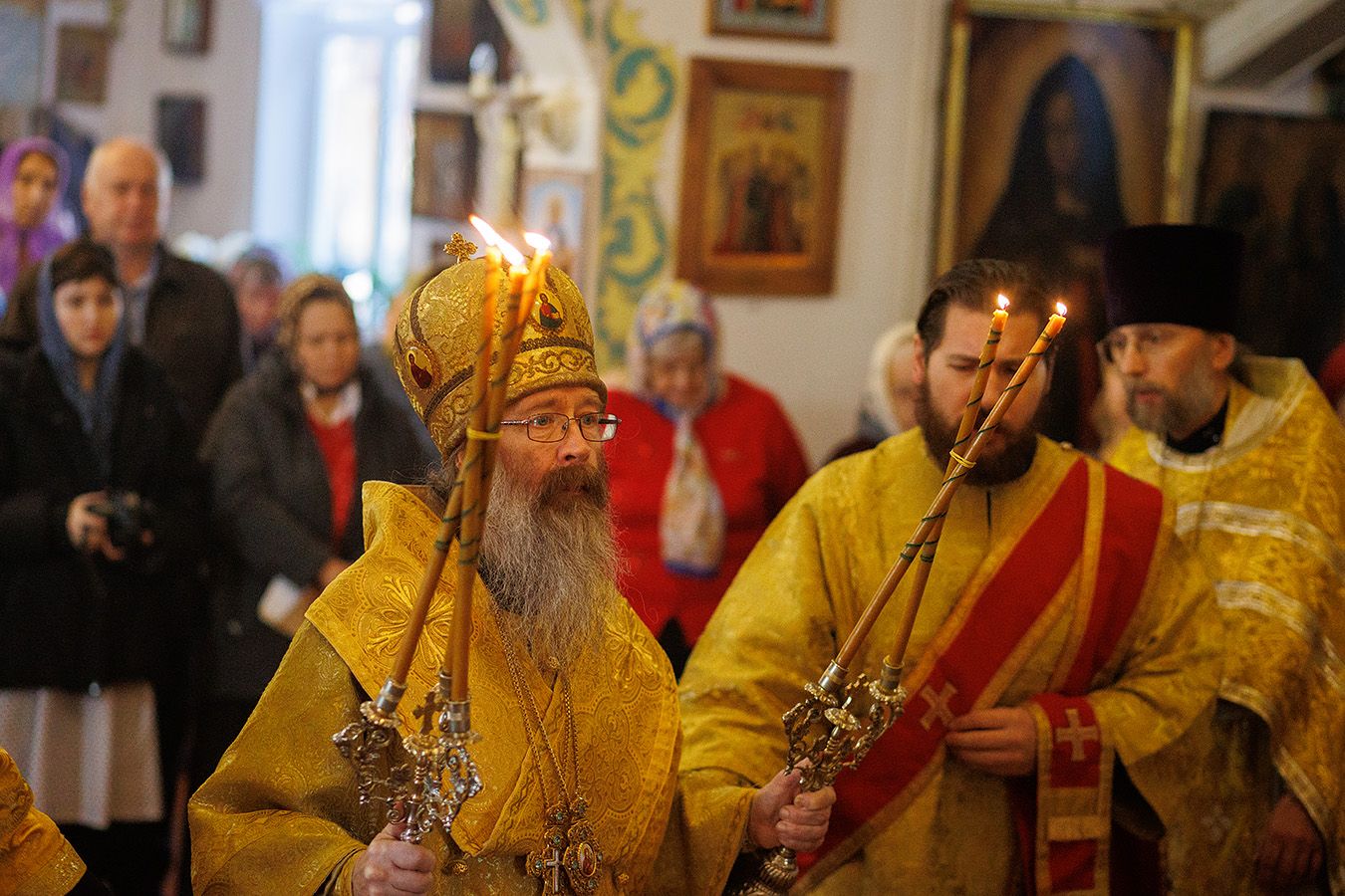Его Высокопреосвященству сослужили благочинный Томского района, настоятель Владимирского храма г. Северска протоиерей Дионисий Степанов, настоятель храма Покрова Пресвятой Богородицы с. Моряковский Затон иерей Сергий Моисеев, настоятель храма святого благоверного князя Александра Невского г. Томска протоиерей Сергий Никаноров и ключарь Богоявленского собора г. Томска иерей Олег Огнёв.