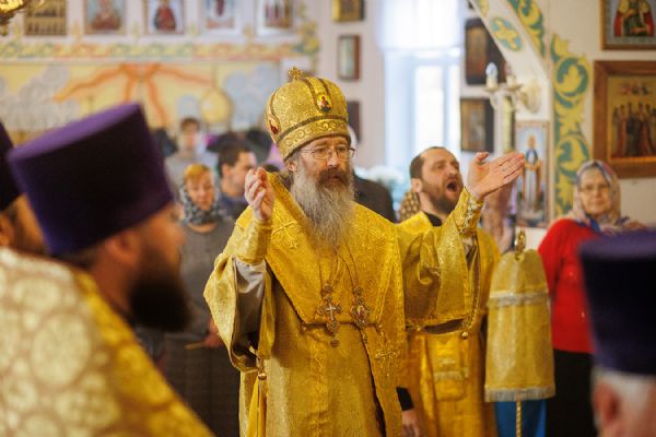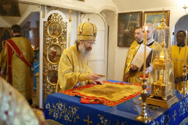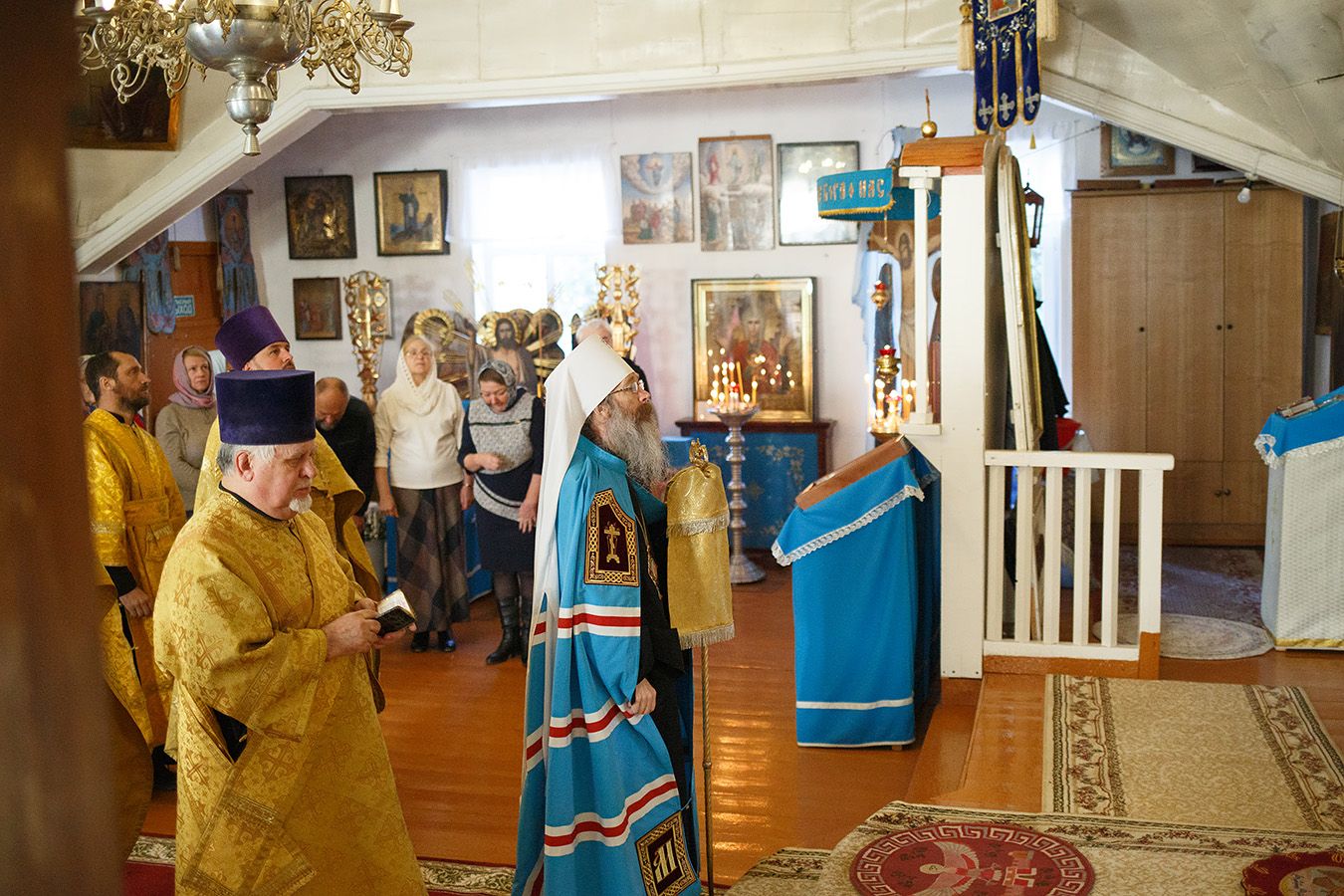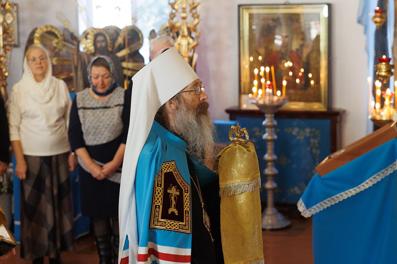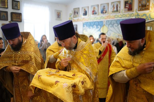 В завершение проповеди митрополит Ростислав поздравил собравшихся с престольным праздником храма, который отмечался 14 октября, и призвал всех к совместной молитве о завершении строительства каменной церкви.