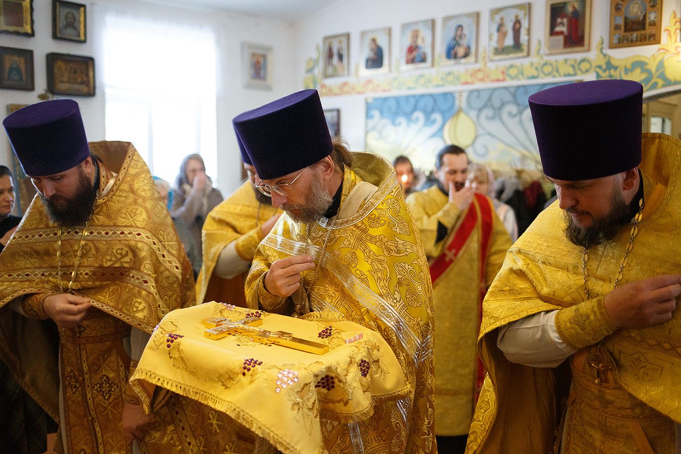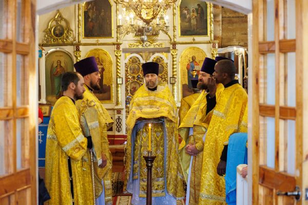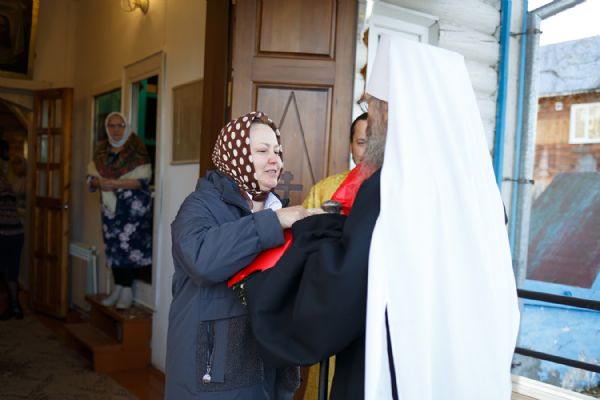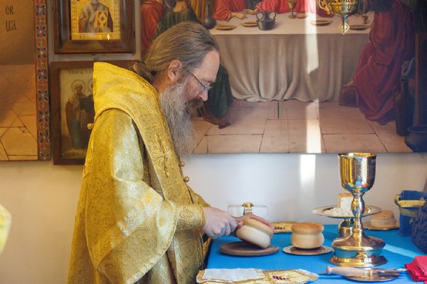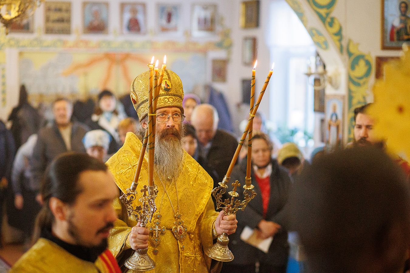 В завершение проповеди митрополит Ростислав поздравил собравшихся с престольным праздником храма, который отмечался 14 октября, и призвал всех к совместной молитве о завершении строительства каменной церкви.