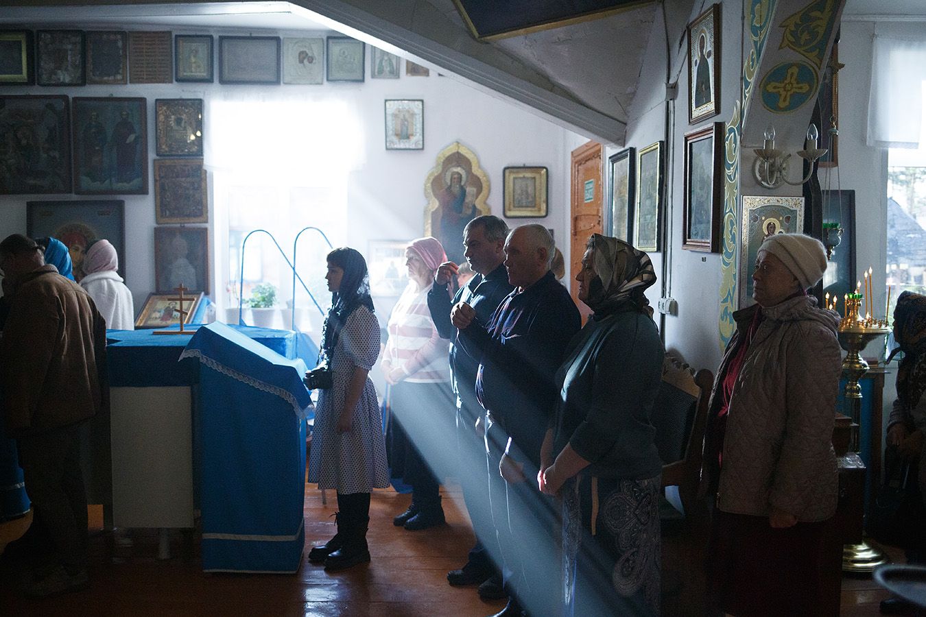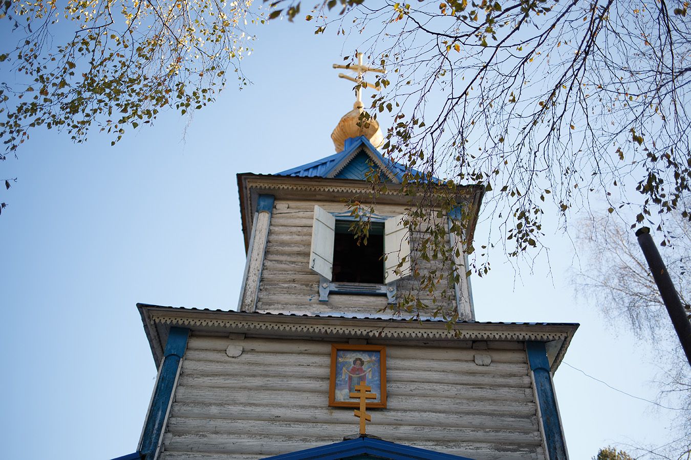 Пока в селе строится новый каменный храм, богослужения совершаются в деревянной церкви, которой в этом году исполнилось 67 лет. Она построена на окраине Моряковки, рядом с лесом.