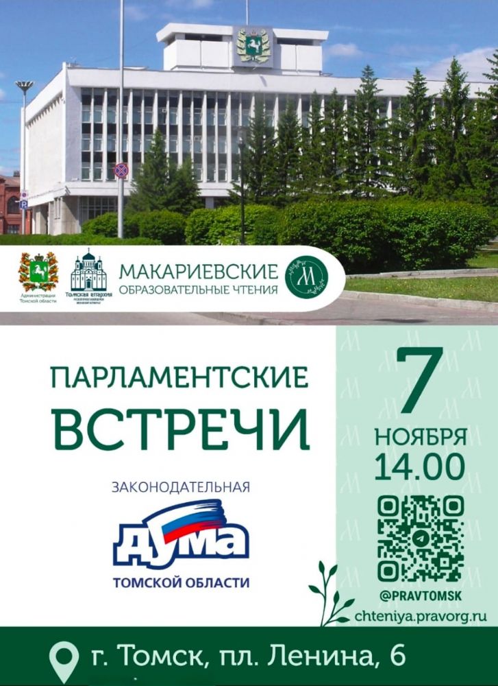 7 ноября в 14.00 в зале заседаний Администрации Томской области состоятся Парламентские встречи с Законодательной Думой Томской области.