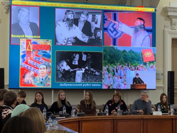 В качестве самого наглядного примера была приведена ситуация с неоязычниками-неонацистами на Украине, которые сначала участвовали в государственном перевороте и захвате власти, а затем из них же сформировались признанные ныне террористическими нацбаты. Аудитория, среди которой значительную часть составляли студенты различных вузов, выслушала докладчиков с огромным вниманием.
