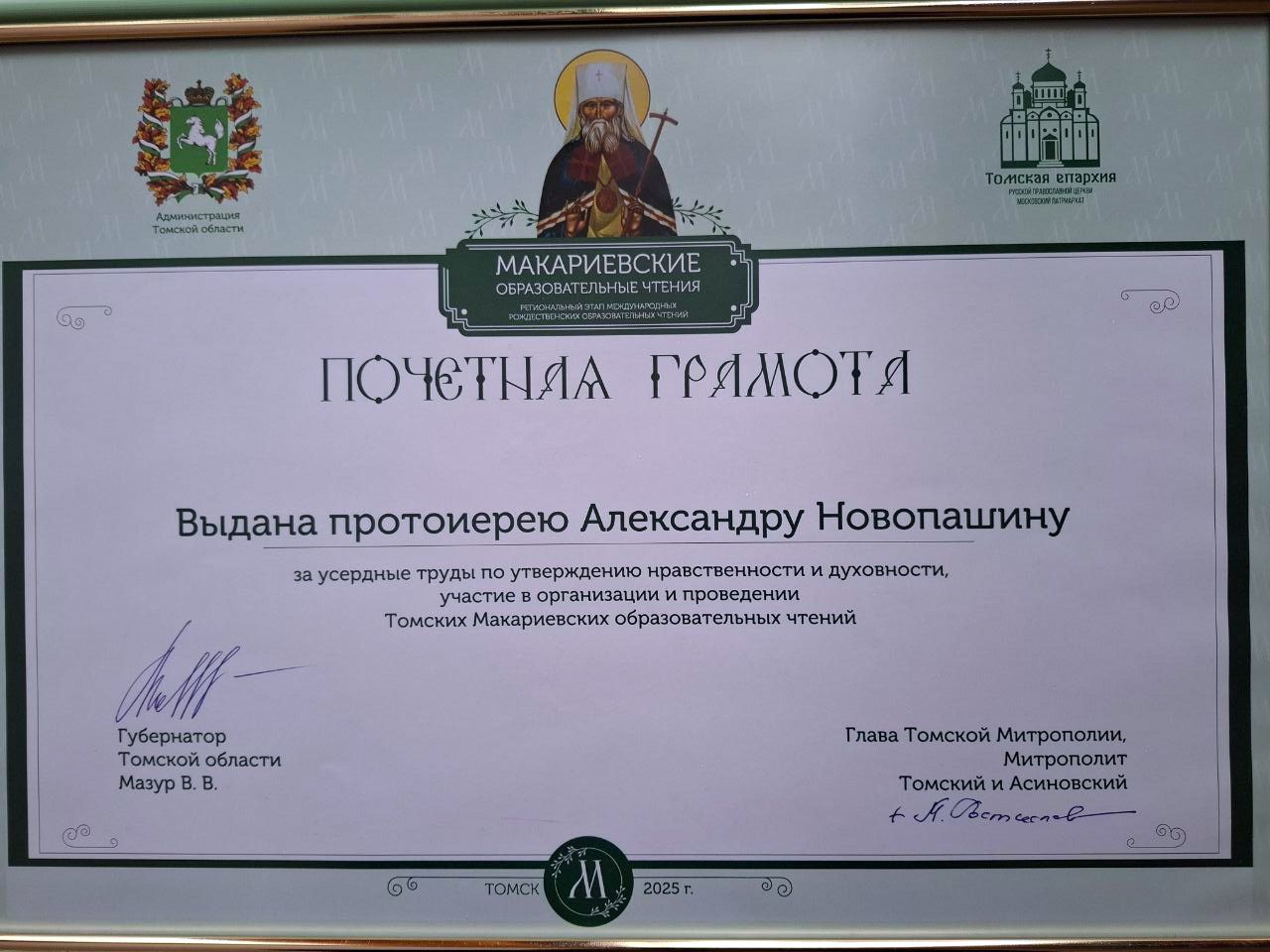 7 ноября в Томске завершился международный форум «Сибирь – территория диалога», в работе которого по приглашению организаторов форума и митрополита Томского и Асиновского Ростислава принял участие руководитель Центра апологетической миссии по СФО, руководитель миссионерского отдела Новосибирской епархии протоиерей Александр Новопашин.