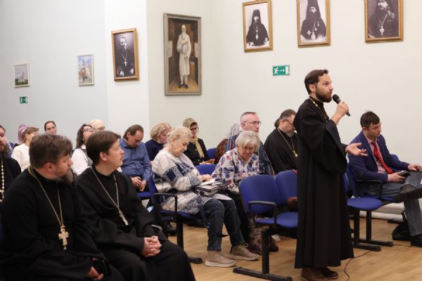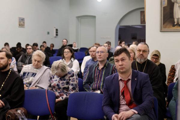 Несмотря на насыщенный по мероприятиям день, на встречу с Александром Дворкиным пришли представители томского духовенства, многочисленные прихожане, а также студенты и преподаватели Томской духовной семинарии.