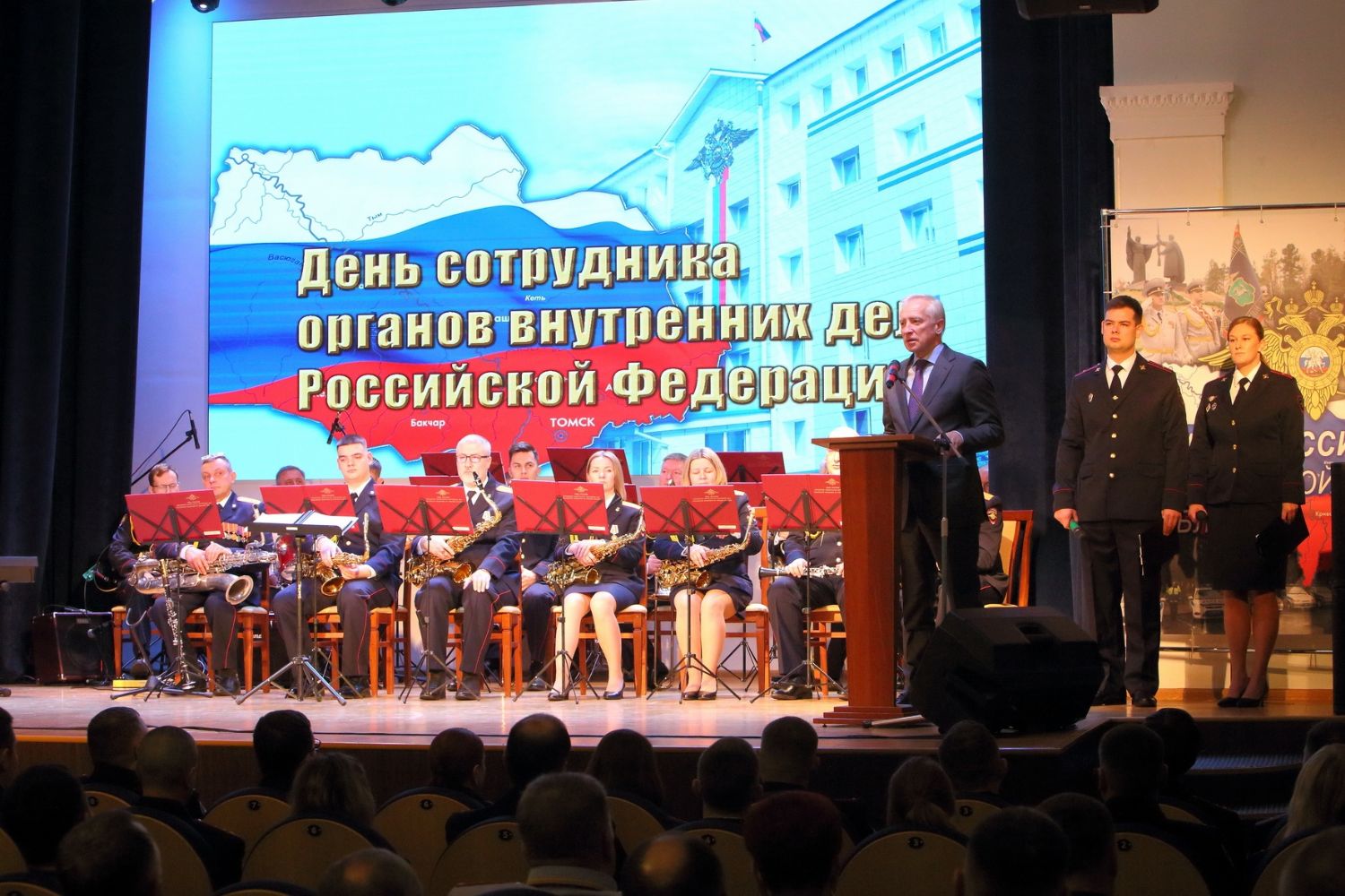 Губернатор Томской области Владимир Мазур поздравил томских полицейских с праздником и отметил, что служба в органах внутренних дел никогда не была легка, но славная томская школа милиции всегда славилась профессионализмом.