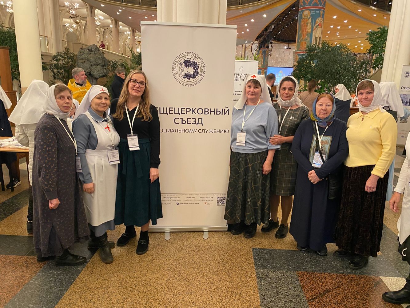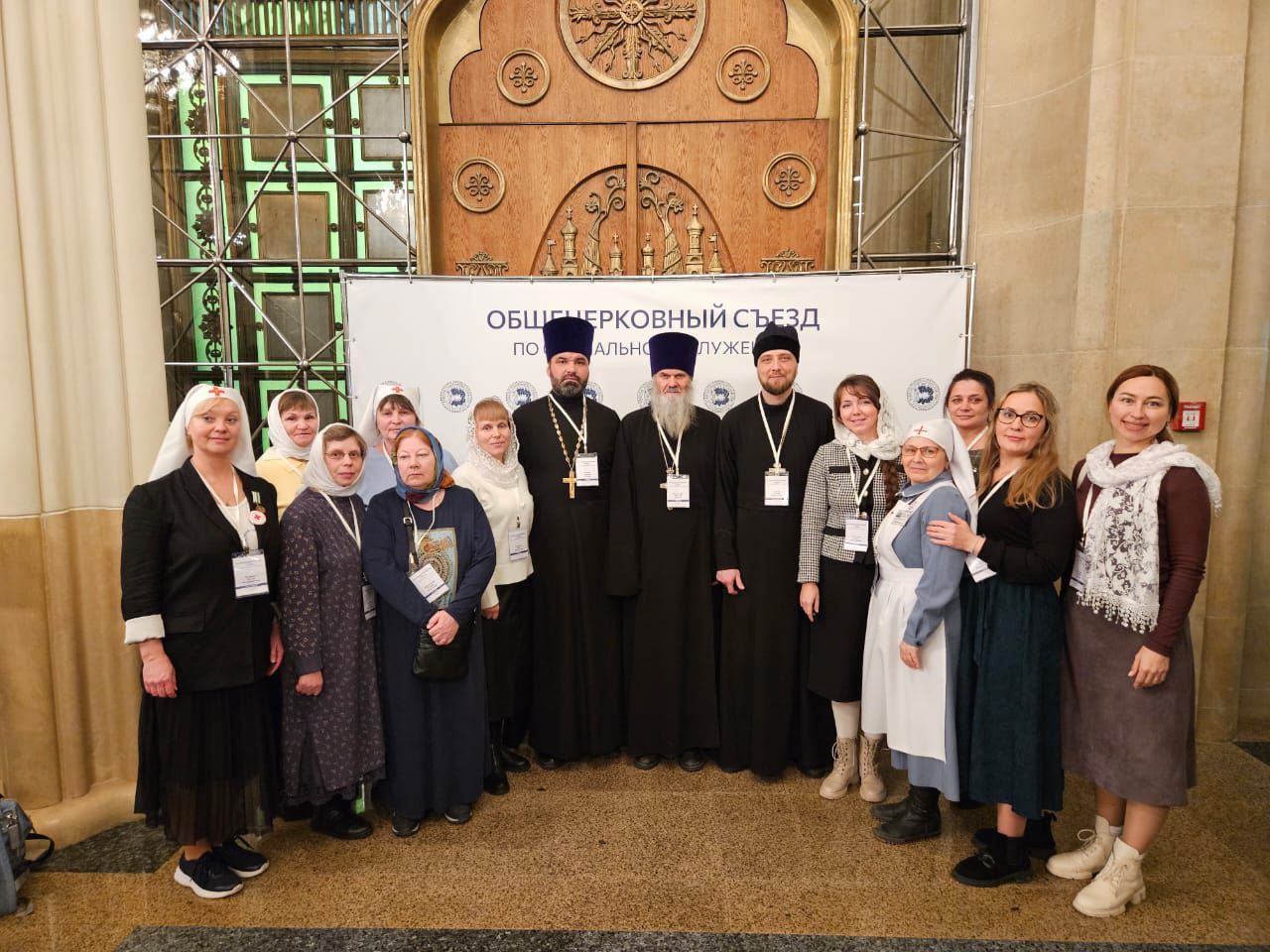 Открытие съезда предварила Божественная литургию в кафедральном соборном Храме Христа Спасителя, которую совершил Святейший Патриарх Московский и всея Руси Кирилл. На пленарном заседании Святейший Патриарх Кирилл сердечно приветствовал участников съезда: «Когда вы помогаете нуждающимся, а это и больные, и лишенные имущества, денег, здоровья, то ведь так или иначе вы самих себя погружаете в эту скорбь. Конечно, если хирург, оперируя больного, сам начинает скорбеть, то ему надо заняться не хирургией, а чем-то другим. Но, в отличие от работы хирурга и вообще врача, дело милосердия всегда требует и сердечного участия, и, думаю, каждый из вас это знает. То, что вы делаете, в каком-то смысле изменило лицо нашей Церкви» . Он отметил важность всех направлений служения— больничного, патронажного, помощи раненным в госпиталях, помощь зависимым, детям, бездомным. Святейший Патриарх отметил важность того, чтобы в каждом храме знали телефон церковной горячей линии социальной помощи 8-800-70-70-222.