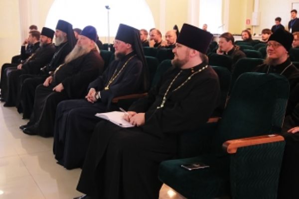 Дальнейшая работа курсов продолжилась в рамках двух секций: «Гомилетика» (модератор архимандрит Симеон (Томачинский)) и «Пастырское богословие» (модератор иерей Андрей Лысевич).