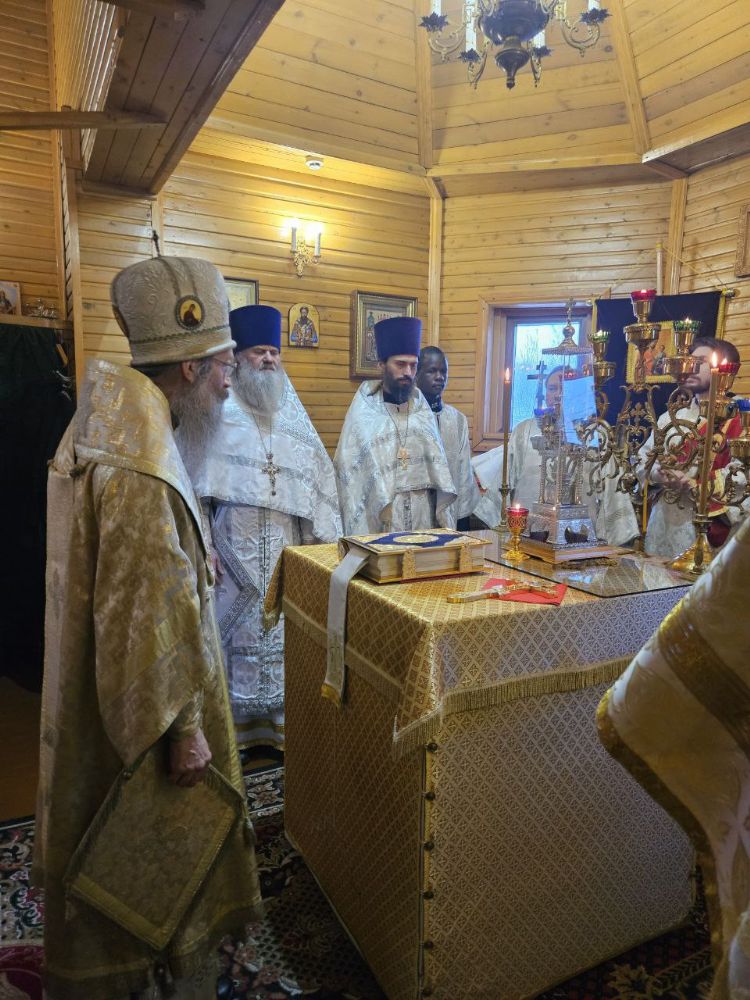 Его Высокопреосвященству сослужил благочинный Благочиния Томского района протоиерей Дионисий Степанов, настоятель Борисоглебского храма в с. Корнилово протоиерей Николай Абрамов, ключарь Богоявленского кафедрального собора иерей Олег Огнев, настоятель храма Архангела Михаила в с. Турунтаево иерей Константин Иванов, протодиакон Владимир Марков.