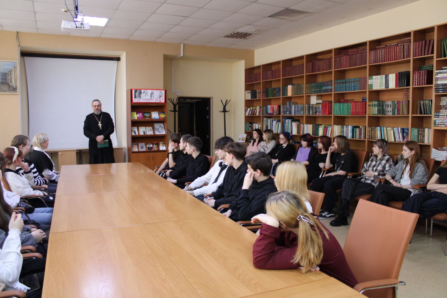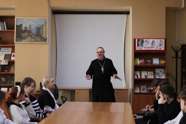 Накануне Дня матери в Томском механико-технологическом техникуме состоялась беседа обучающихся с настоятелем храма Новомучеников и исповедников Церкви Русской протоиереем Александром Шаховым на тему роли матери как носительницы и защитницы духовности.