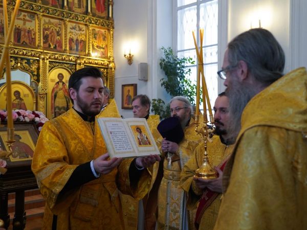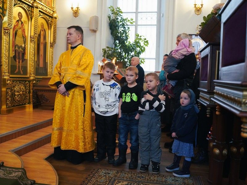 Диаконский чин возглавил протодиакон Владимир Марков. В честь престольного праздника вместе с приходским хором песнопения Литургии исполнял детский хор под управлением регента Ольги Сёминой.