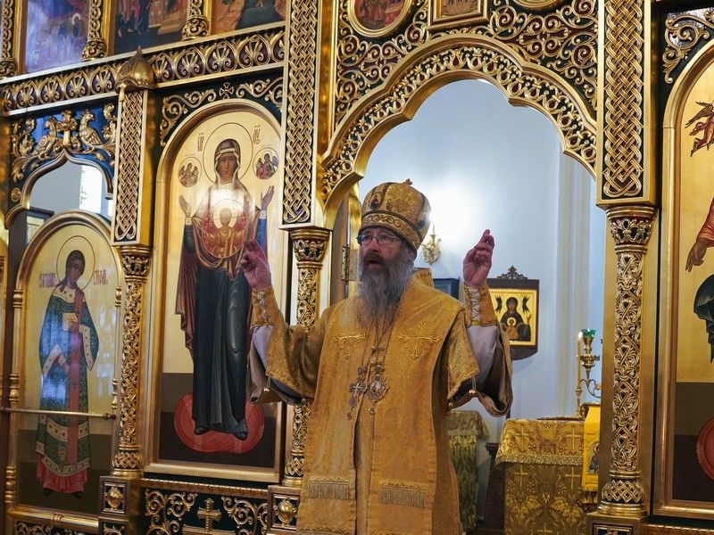 По окончании Литургии Его Высокопреосвященство обратился к верующим с архипастырским словом, подчеркнув, что только соблюдая Божественные заповеди, человек может достигнуть счастья.