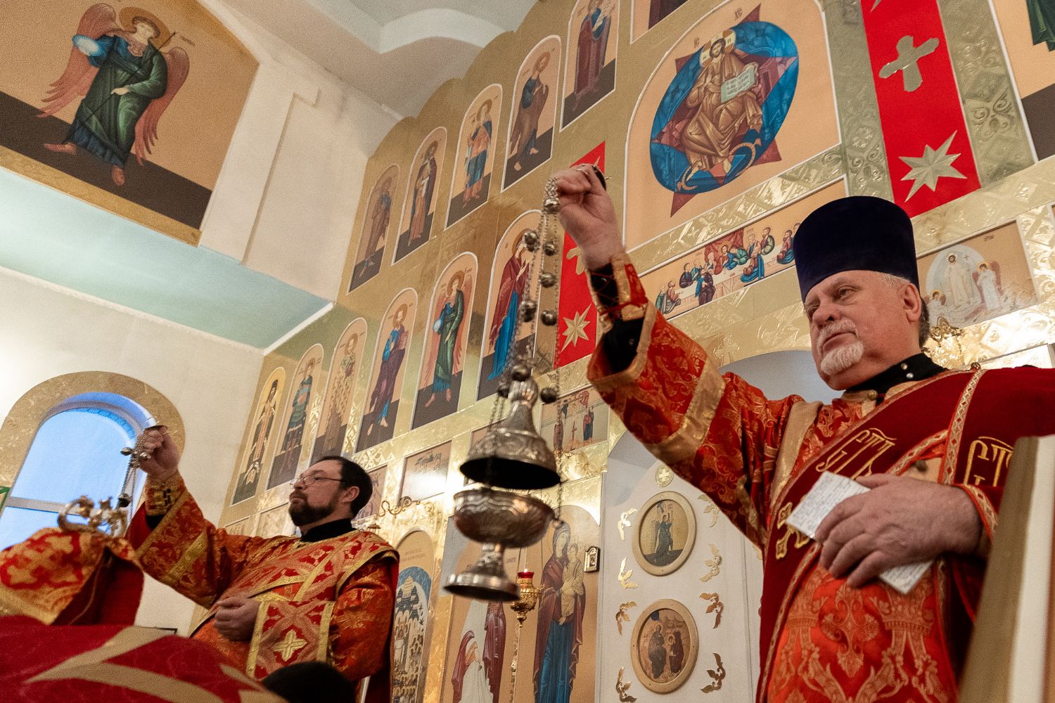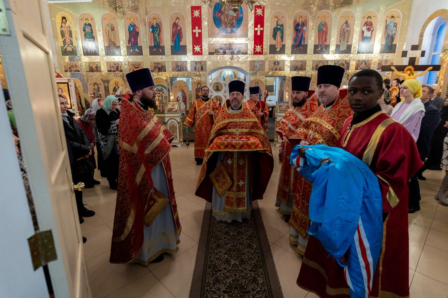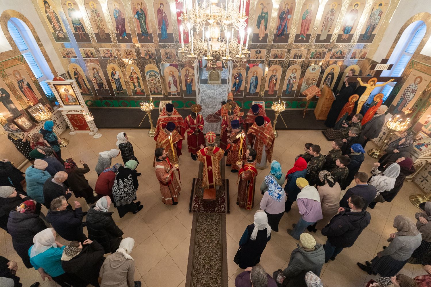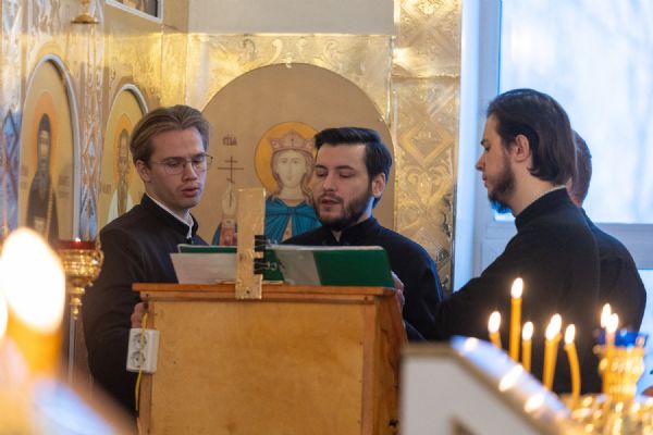 Главе Томской митрополии сослужили: благочинный Градо-Томского благочиния протоиерей Сергий Никаноров,настоятель Богоявленского собора г. Томска иерей Олег Огнев, благочинный Восточного благочиния, настоятель Покровского храма г. Асино протоиерей Александр Никулин; настоятель Свято-Екатерининского храма д. Крутоложное и Свято-Троицкого храма с. Первомайское иерей Владимир Лукьяненко;