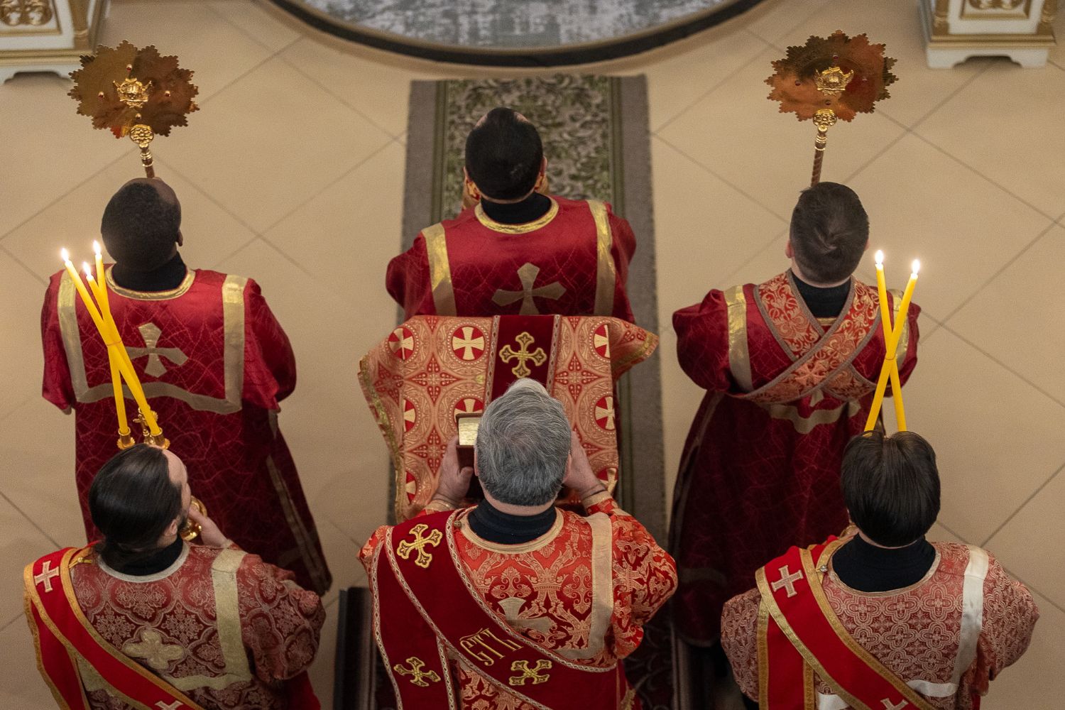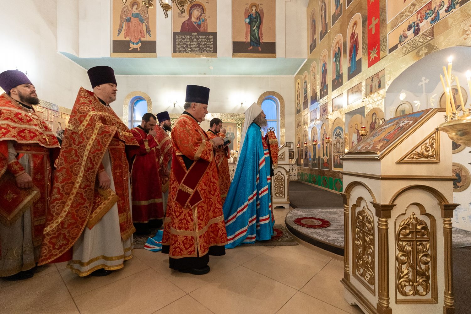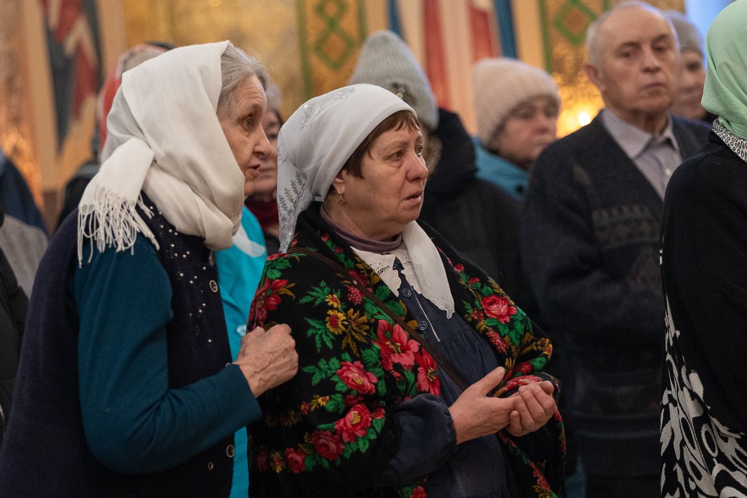 Главе Томской митрополии сослужили: благочинный Градо-Томского благочиния протоиерей Сергий Никаноров,настоятель Богоявленского собора г. Томска иерей Олег Огнев, благочинный Восточного благочиния, настоятель Покровского храма г. Асино протоиерей Александр Никулин; настоятель Свято-Екатерининского храма д. Крутоложное и Свято-Троицкого храма с. Первомайское иерей Владимир Лукьяненко;