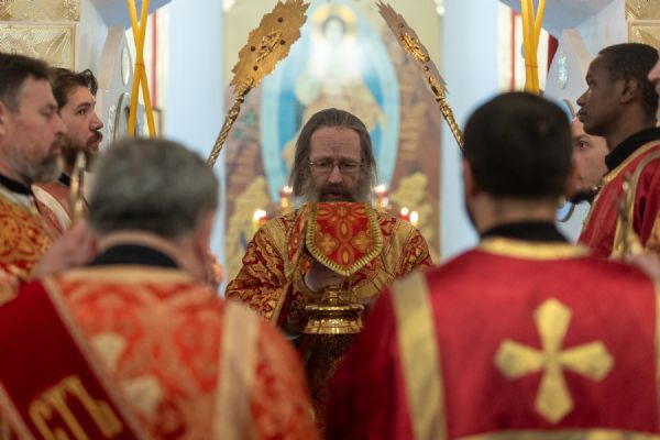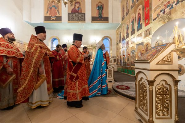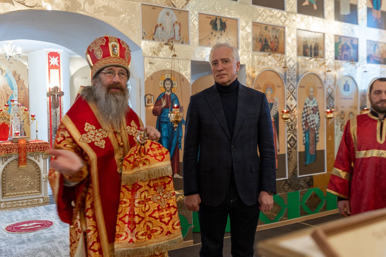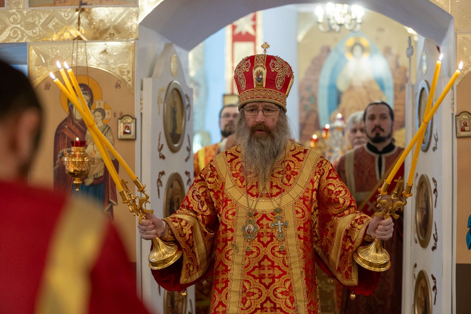 В своей проповеди Его Высокопреосвященство поздравил собравшихся с воскресным днём и с днём памяти святой великомученицы Екатерины. Митрополит Ростислав напомнил житие святой, а также историю создания храма. Глава Томской митрополии передал слово Губернатору Томской области. Владимир Владимирович поблагодарил всех, кто пришёл в храм в этот день и адресовал собравшимся добрые пожелания.