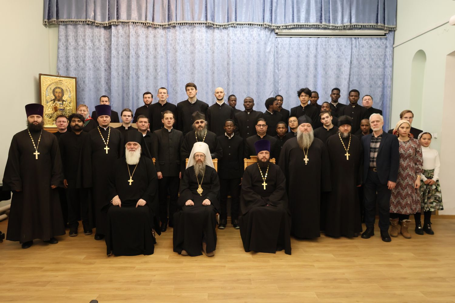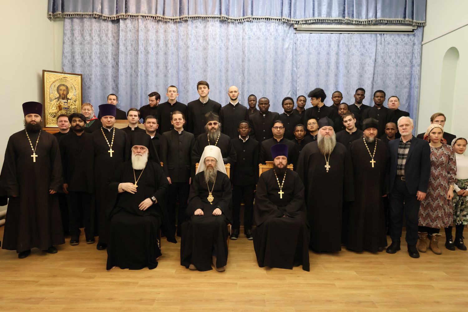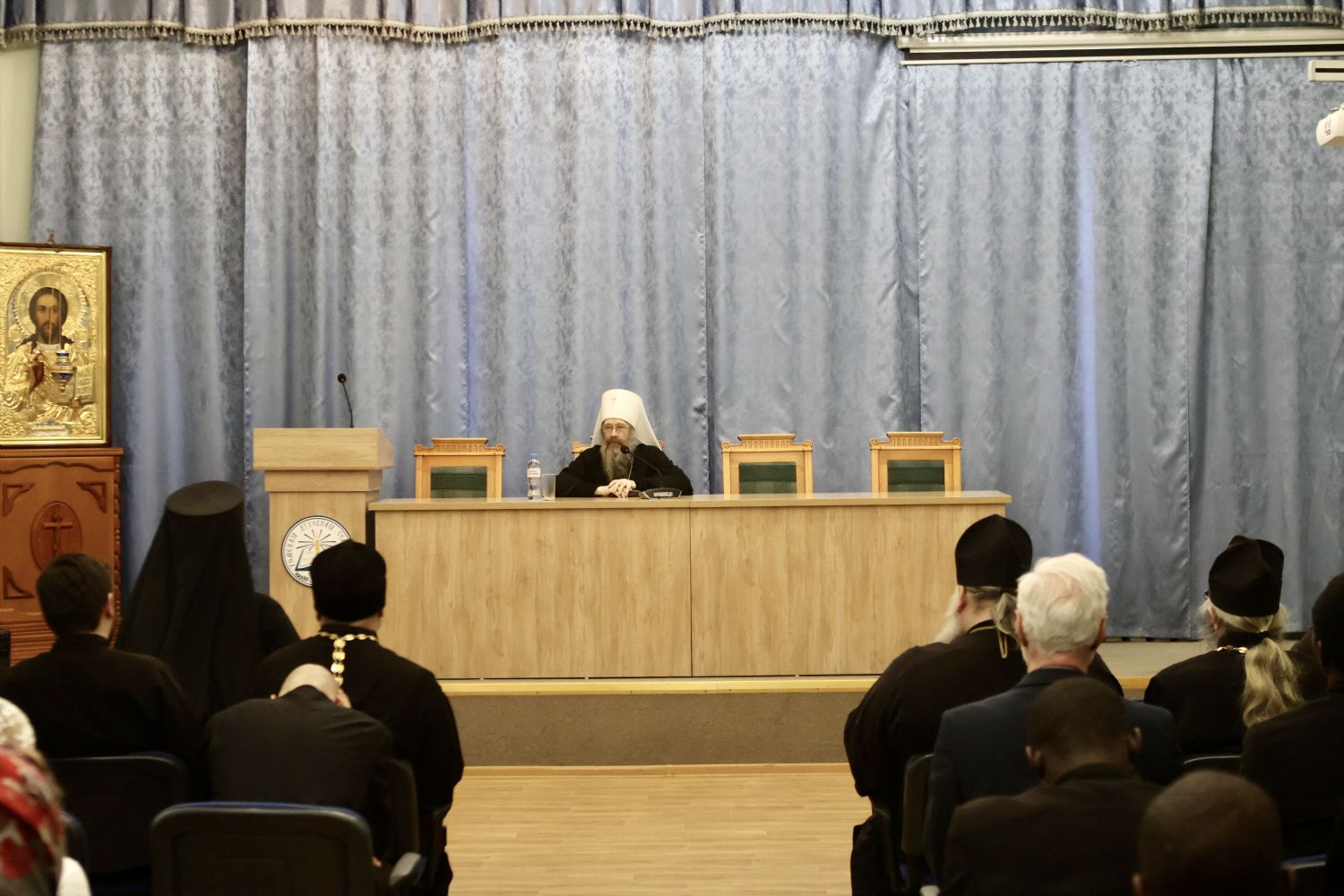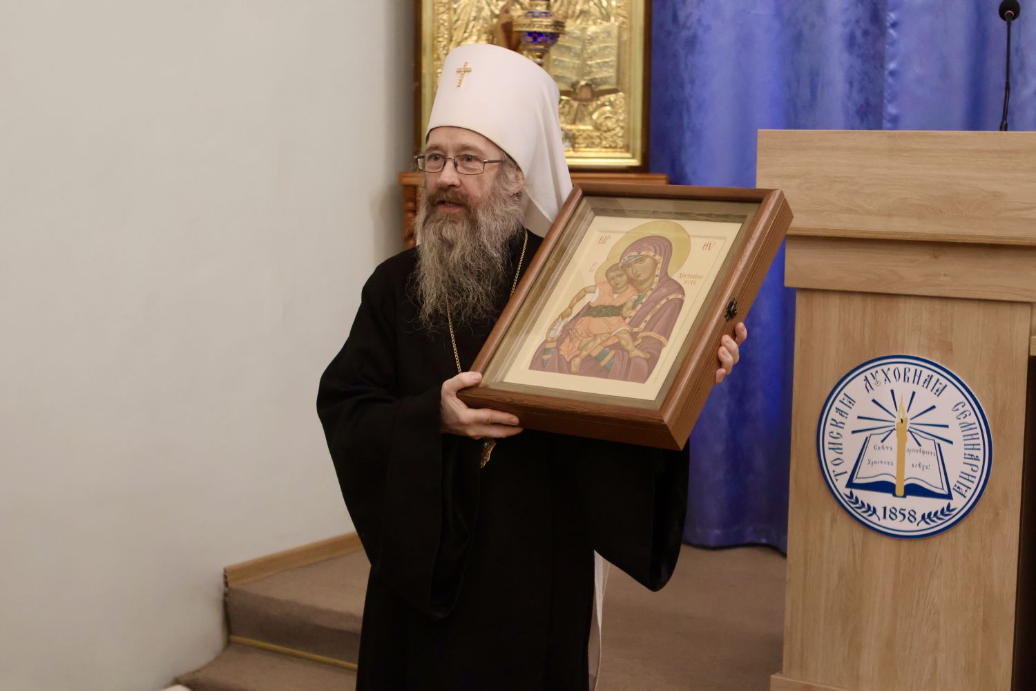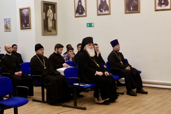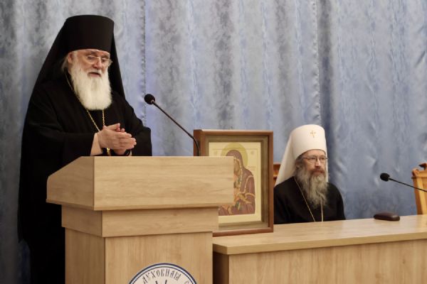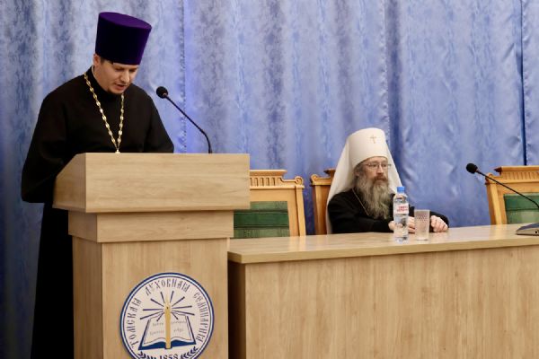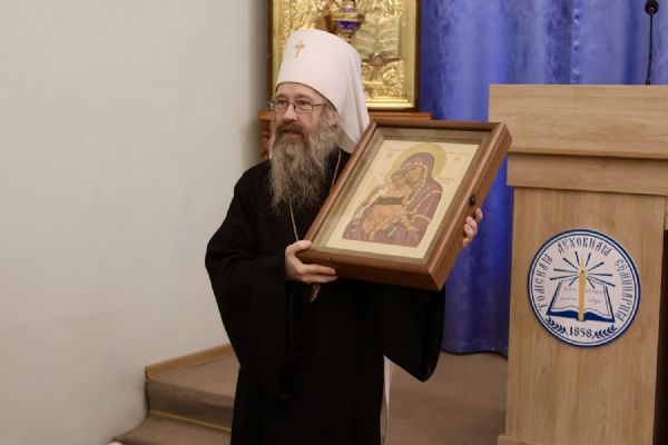 Затем в актовом зале семинарии прошла праздничная встреча. Обращаясь к собравшимся, глава Томской митрополии митрополит Ростислав напомнил о богатой истории духовной школы, неотделимой от истории епархии.