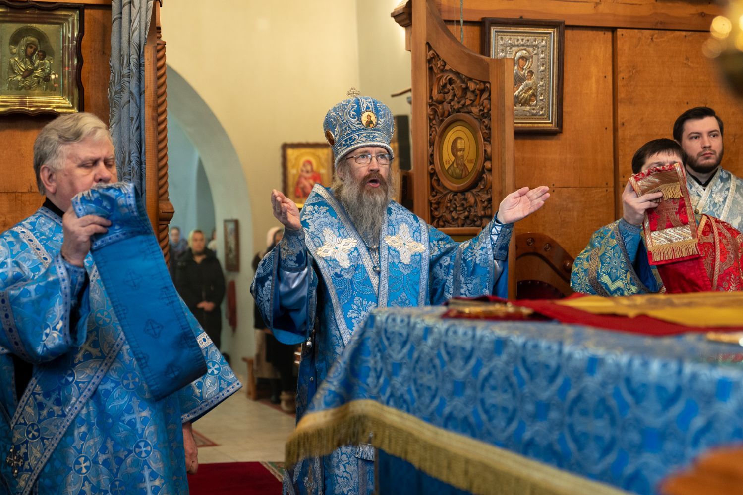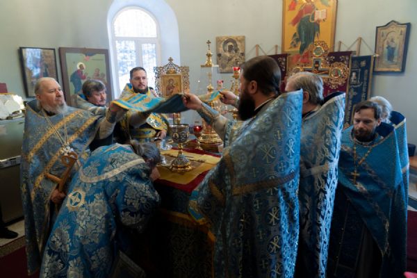 Его Высокопреосвященству сослужили: благочинный 1-го Градо-Томского благочиния, настоятель храма святого благоверного князя Александра Невского г. Томска протоиерей Сергий Никаноров, ключарь Богоявленского собора иерей Олег Огнёв, настоятель Знаменского храма протоиерей Николай Яськов и духовенство храма. Диаконский чин возглавил протодиакон Владимир Марков.
