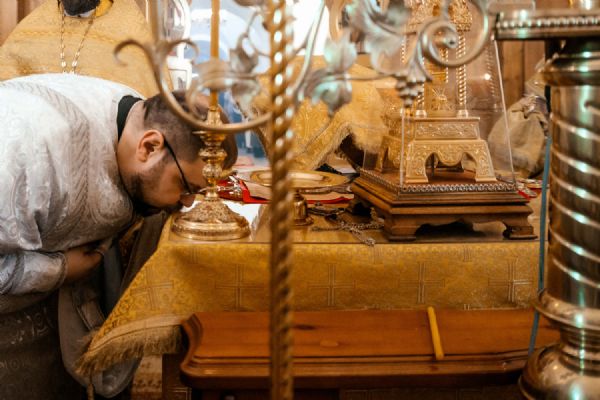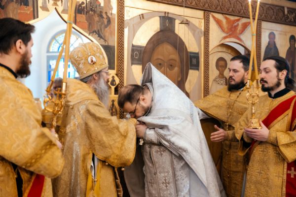 После того как были прочитаны все необходимые молитвы, митрополит Ростислав облачил рукоположенного в священнические одежды: епитрахиль, пояс и фелонь. Также ему был передан Служебник, который служит руководством для проведения богослужений.
