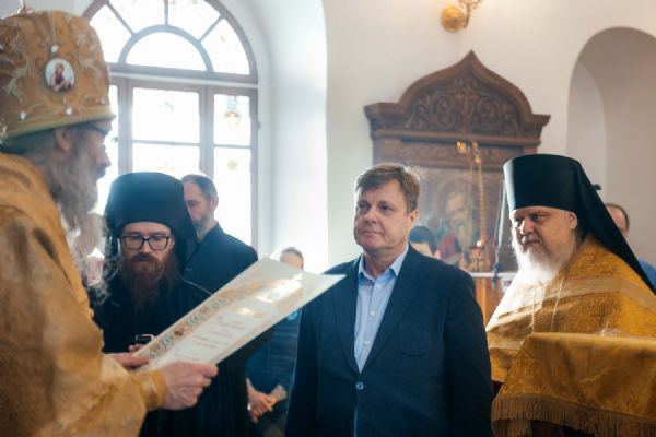 По отпусте Литургии директор ООО "Северскмонтажстрой" Грыцык Александр Григорьевич был награжден митрополитом Ростиславом архиерейской грамотой за усердные труды во славу Святой Церкви.