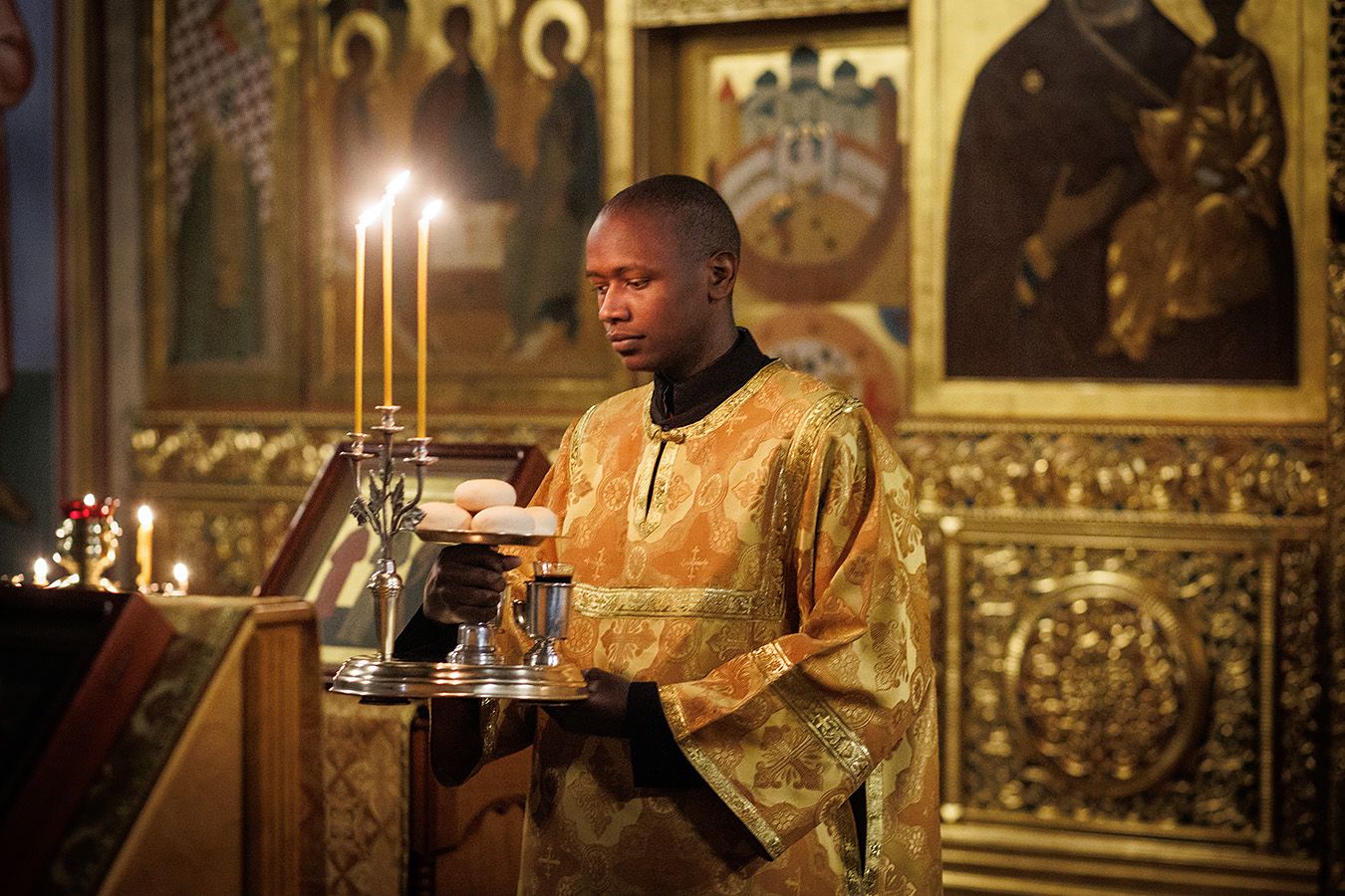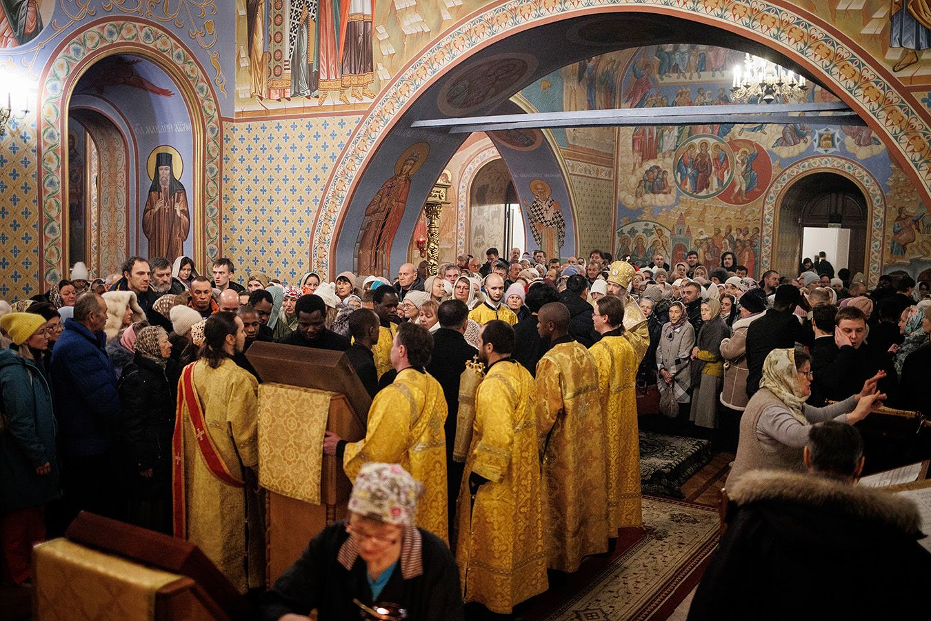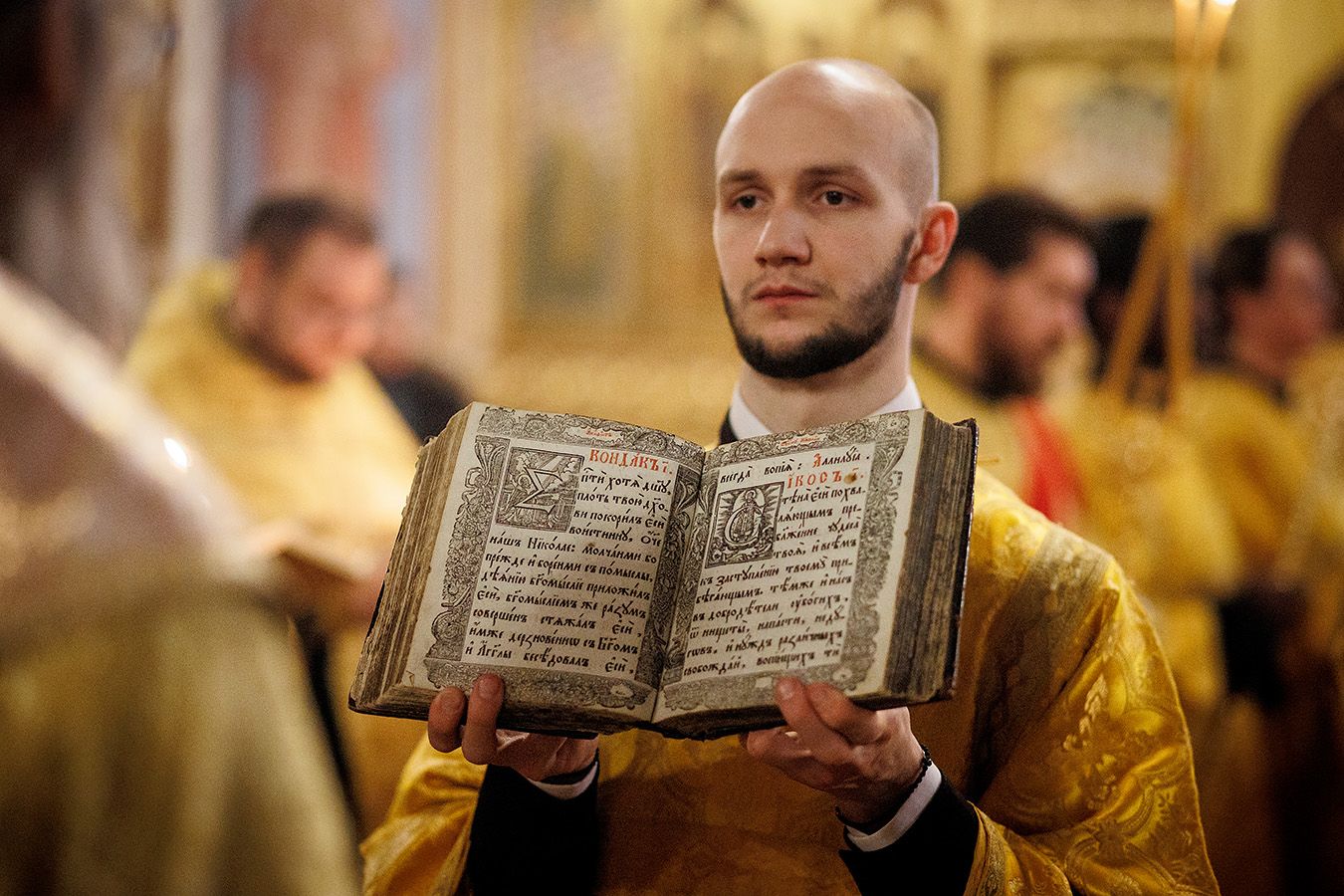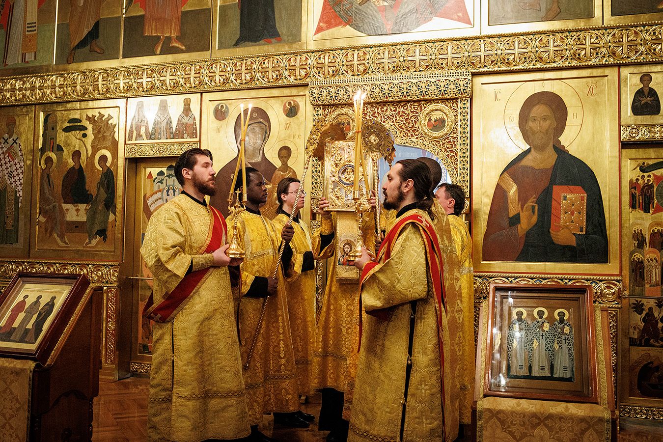 По окончании чтения шестопсалмия старинная икона святителя с клеймами была вынесена из алтаря Богоявленского собора. Перед святыней был прочитан акафист и совершено полиелейное богослужение. Каждый молящийся смог приложиться к иконе.