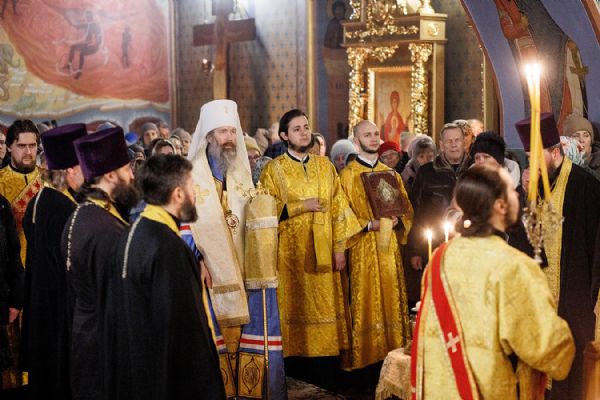 В Богоявленском кафедральном соборе г. Томска было совершено Всенощное бдение, которое возглавил митрополит Томский и Асиновский Ростислав.