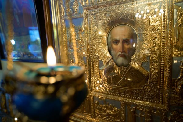 Богослужение было ознаменовано встречей старинной иконы святителя Николая Чудотворца с клеймами, которая накануне прибыла на Томскую землю.