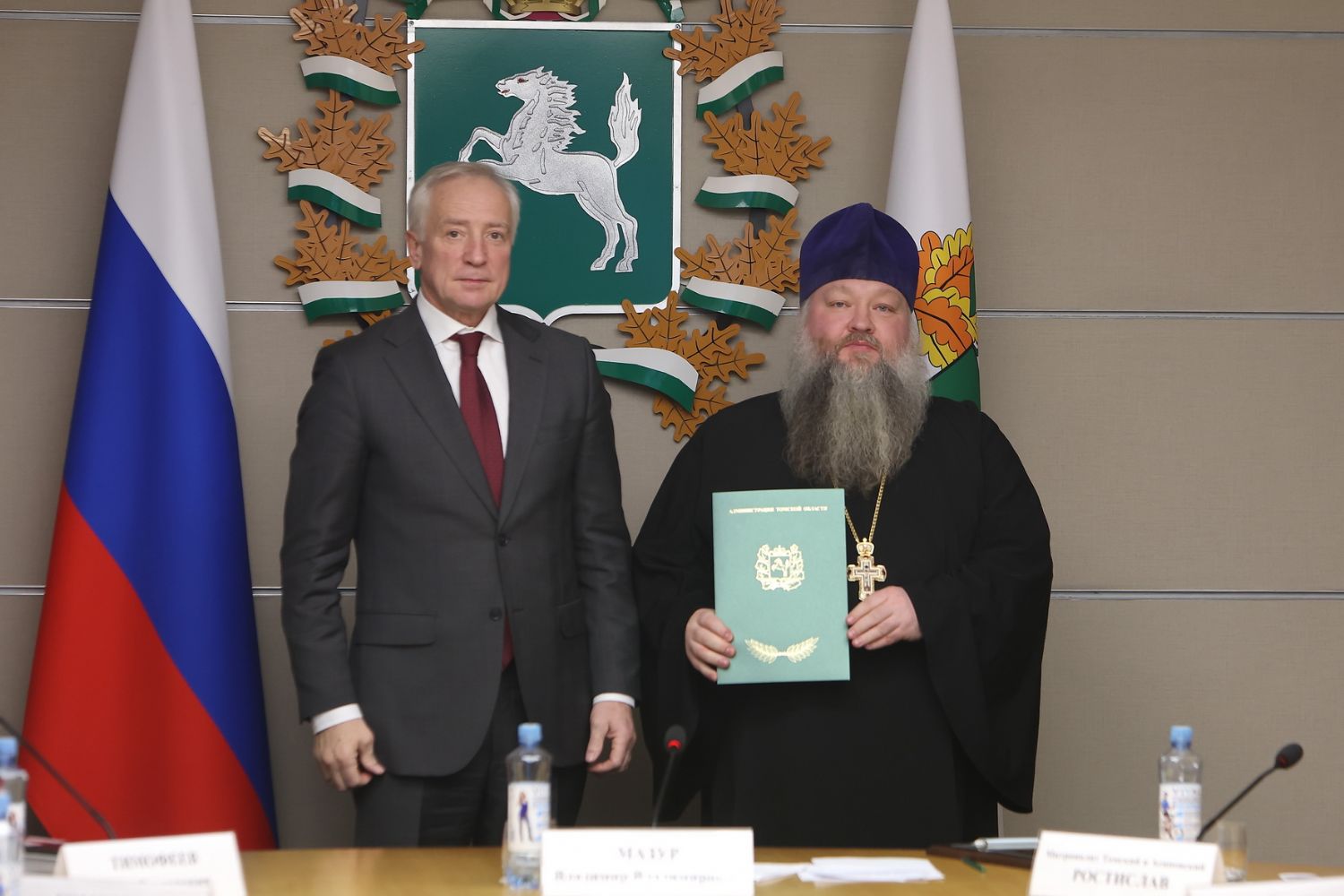 Владимир Мазур вручил благодарственные письма за вклад в укрепление единства нации председателю Томской региональной общественной организации «Союз дагестанских народов Томской области» Афсаладину Ахмедову, председателю региональной общественной организации поддержки граждан Таджикистана в Томской области «Содружество» Рафику Ахмедову, председателю регионального отделения общероссийской общественной организации «Союз армян России» в Томской области Рубену Манукяну и руководителю отдела по взаимодействию Церкви и общества Томской епархии Русской Православной церкви протоиерею Андрею Турову.