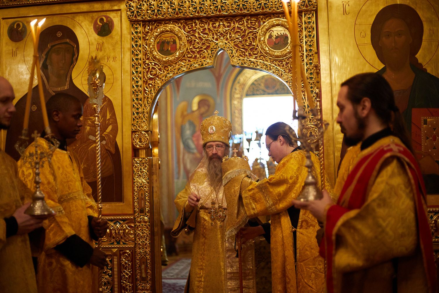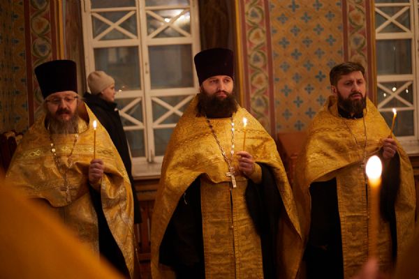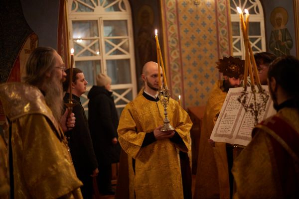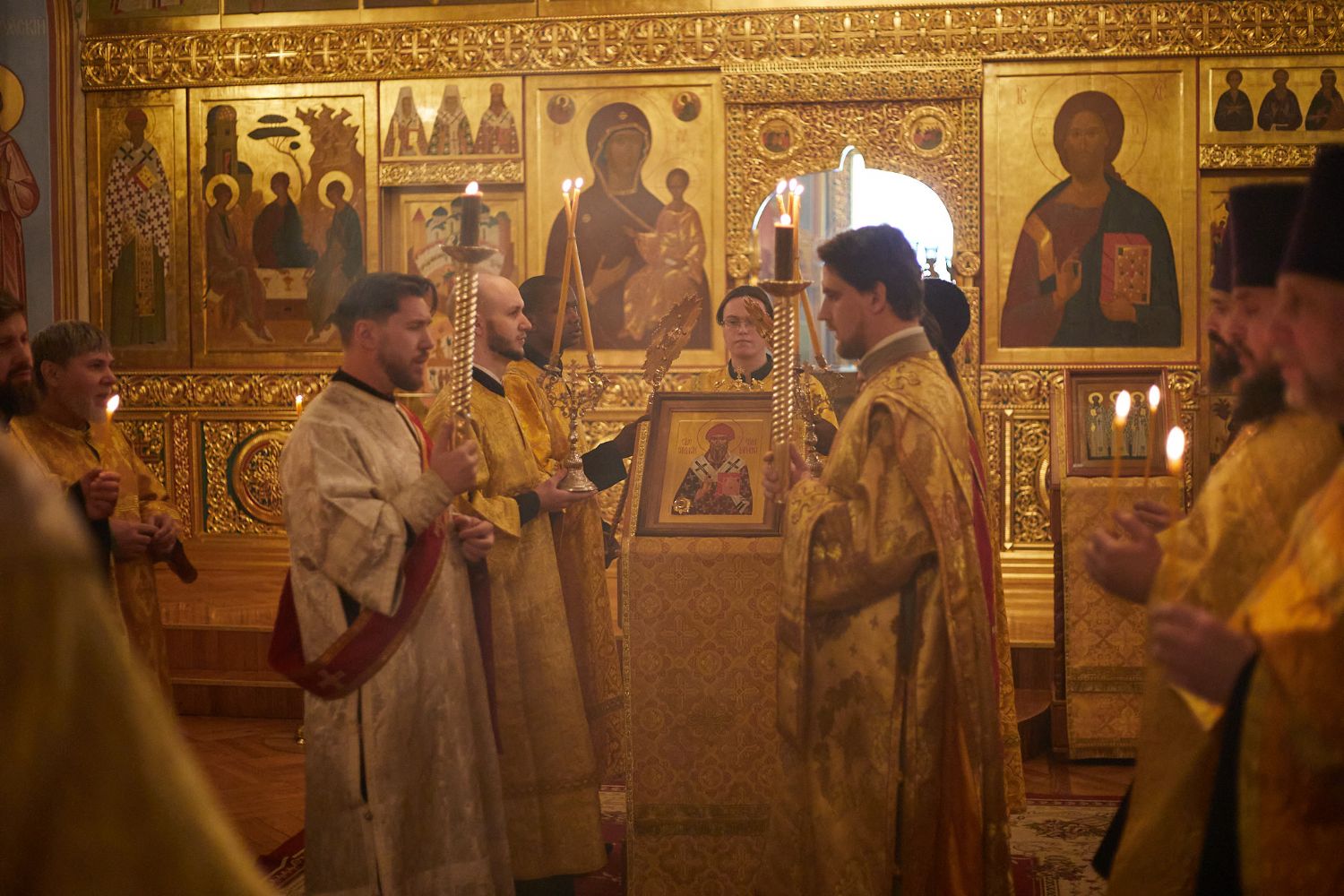 Всенощное бдение накануне дня памяти святителя Спиридона Тримифунтского совершено в Богоявленском кафедральном соборе
