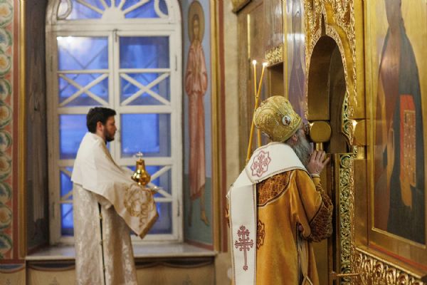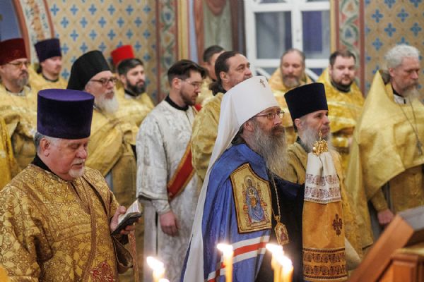 Соборное богослужение накануне Общеепархиального собрания проходит в день памяти святителя Спиридона Тримифунтского уже девятый год подряд и стало епархиальной традицией.