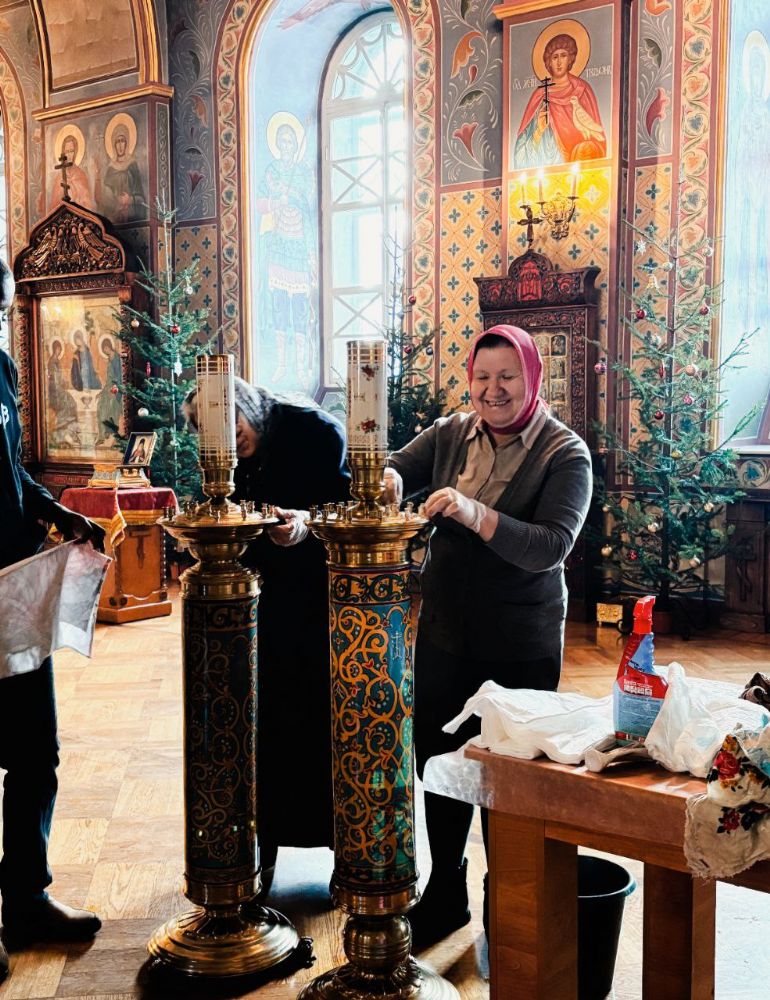 Ещё 3 января православная молодёжь, семинаристы и прихожане подготовили главный храм Томской епархии — Богоявленский кафедральный собор к празднику. Ребята и взрослые провели уборку, нарядили ели, украсили верхний придел собора