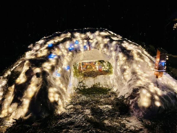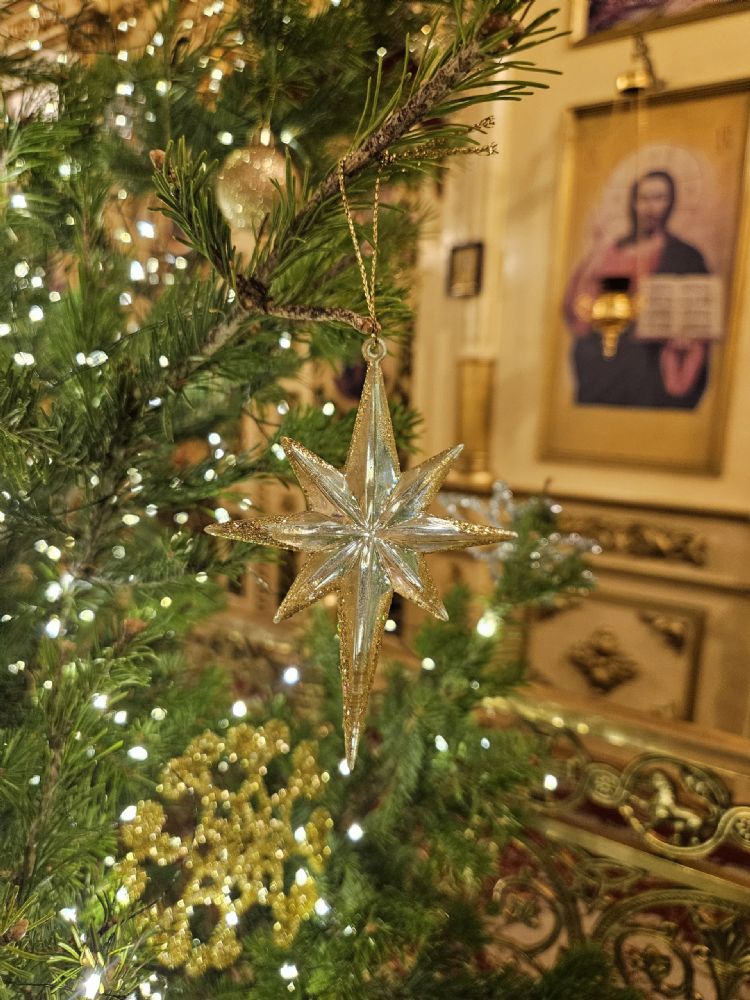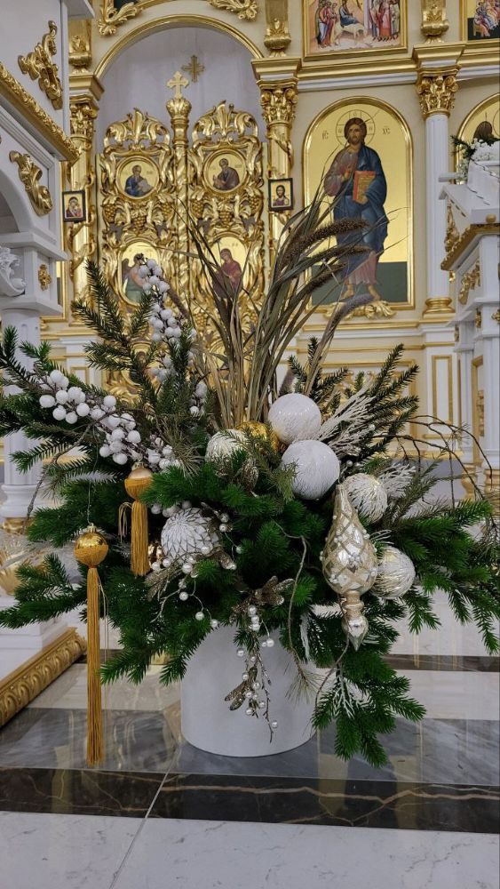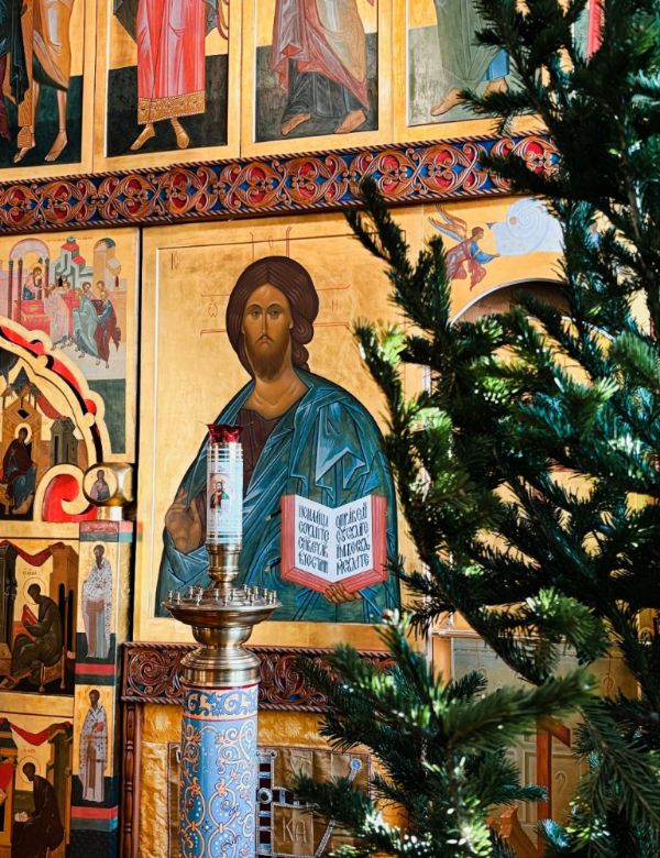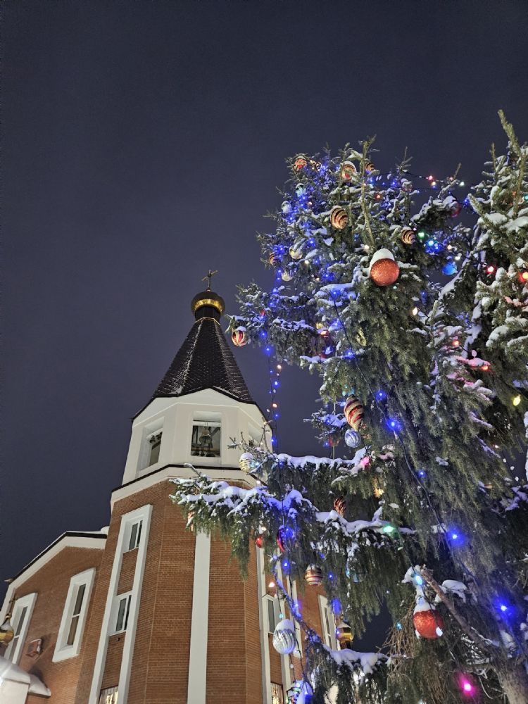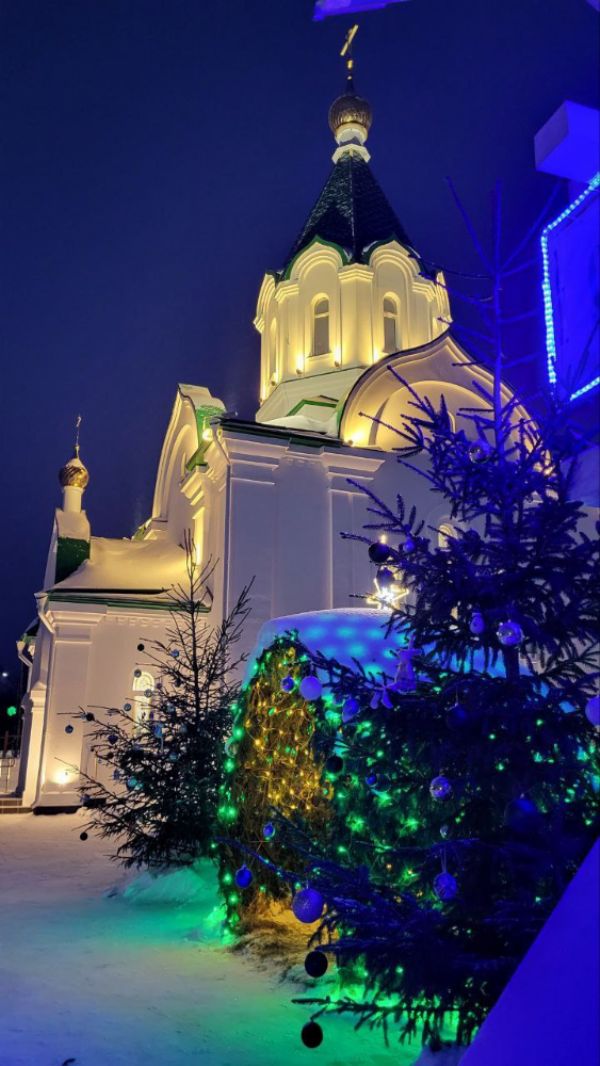 Во дворе храмов появились вертепы, украшенные гирляндами, вифлеемской звездой, ветками пихты.